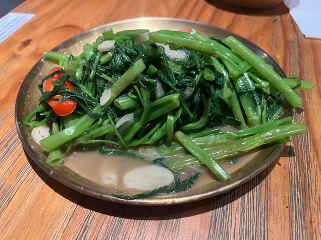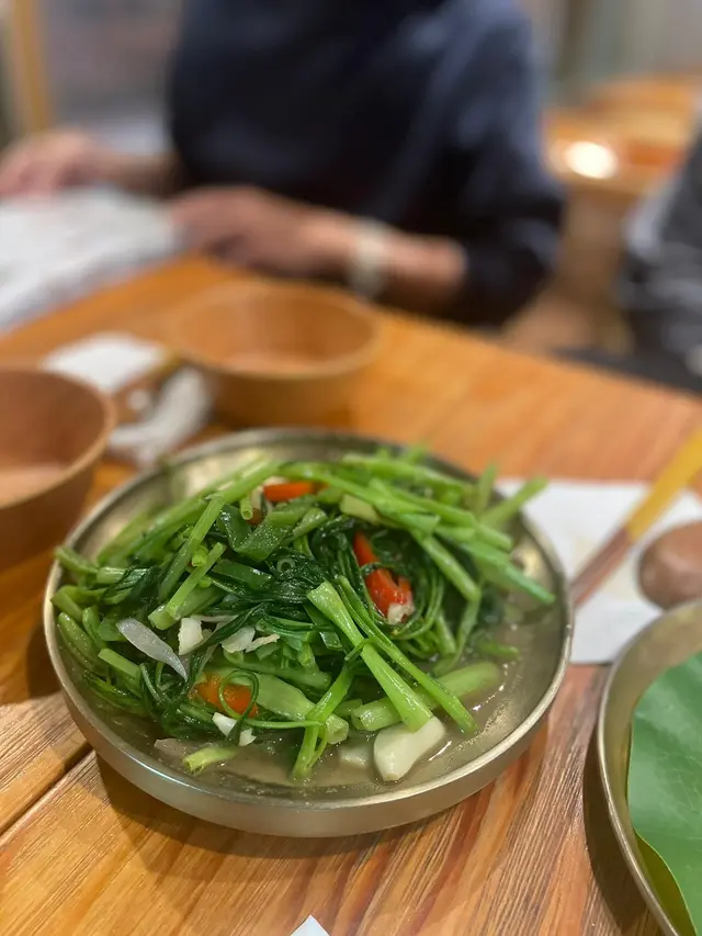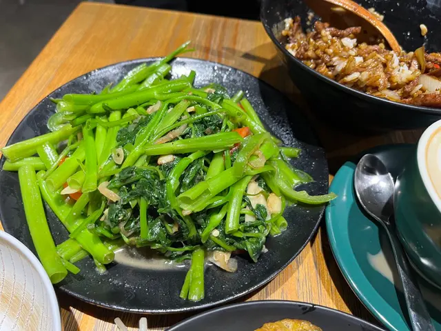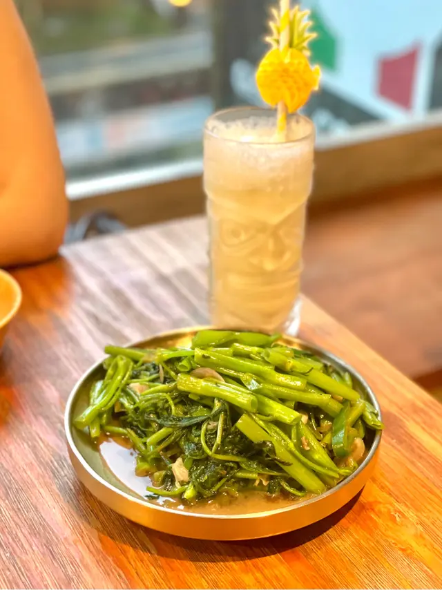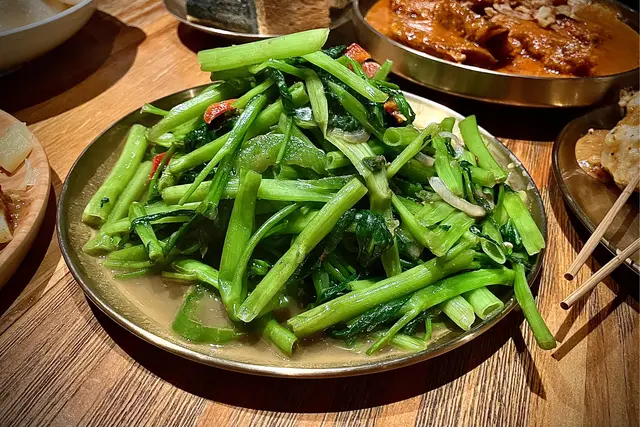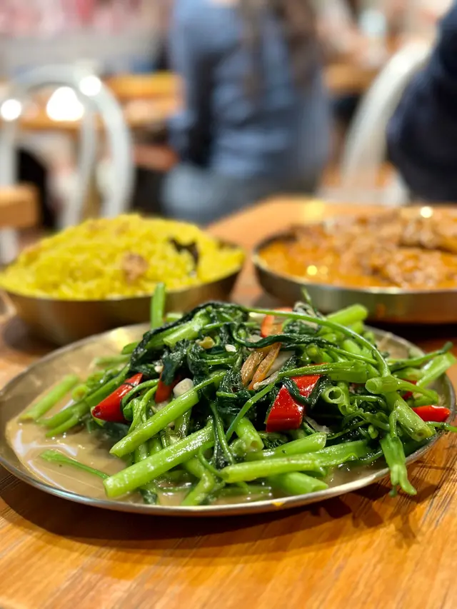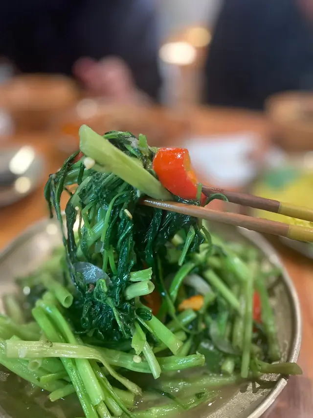 蝦醬炒通菜翠綠清新,蝦醬香氣撲鼻,略帶鹹香,口感平衡