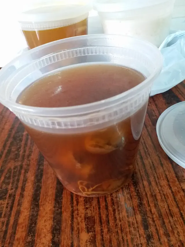 4-10-2022 (Tue)重陽節假期,同老公出去食完早餐同懲罰咗阿布泰後,熱到冇mood,我就返屋企先,老公就繼續喺街盪,盪到食晏時間添,之後佢喺呢喥睇到燉湯,於是想買,佢whatsapp我話有好多款,最後我揀咗三款夜晚飲:1. 五指毛桃燉鮑魚我記得2020年農曆新年,喺位元堂買過五指毛桃湯,覺得好甜好好飲,呢次見到,就揀呢隻,裡面有一隻鮑魚,重有雞腳同豬肉,飲落,嗯,係甜o架,但又唔係好甜,係清甜,唔錯.鮑魚仍有咬口,其他食材都好腍.味道:5分2. 蟲草花赤肉燉海參見到同樣有雞腳同豬肉,呢個俾爸爸飲,佢一個人食晒同飲晒,我冇試到.3. 杏汁金果燉白肺呢個老公飲,但我都飲啲,啖湯係正常有杏仁味,但唔似燉,似煲;白肺好滑,但我唔係咁鍾意咁嘅口感.味道:3.5分價錢:每款都係$68.00,外賣盒$1.00.2.7分…查看更多