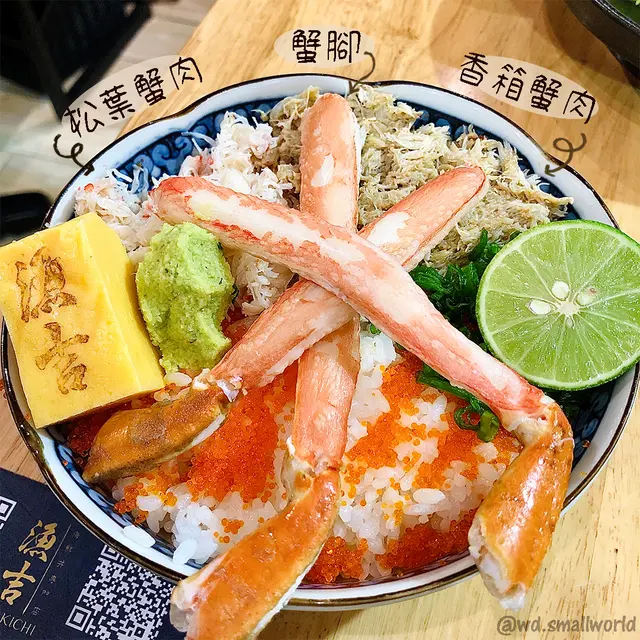 今次去九龍城 唔係食泰菜係食丼飯!作為蟹控 就算輕微敏感都不惜一切去試一試🍱蟹三味蟹!全部都係蟹.....蟹控必食既丼 🦀熟蟹腳鮮甜帶鹹 🦀香箱&松葉蟹肉份量十足 🦀蟹膏蟹籽配上香軟日本產珍珠米撈埋一齊食 三重享受係幸福既感覺🥰忍唔住食多兩啖🍱漁吉特選丼 🐙三文魚。油甘魚。帆立貝 🦑星鰻。海膽。赤蝦。蟹籽 🦐產地直送鮮魚。左口魚邊 🦀三文魚籽。櫻花魷魚呢個丼就岩曬選擇困難症又想試曬咁多種刺身嘅朋友共有十一種魚生食材豐富 份量十足小編最鍾意係星鰻 醬汁味道適中唔會搶走左鰻魚本身既鮮甜🍱海虎蝦天婦羅由壁畫 裝修 店舖都係走日系連背景音樂都襯埋 抵讚!…查看更多