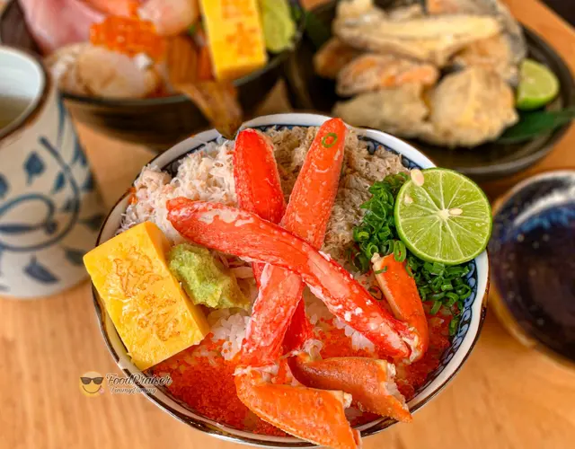 大胃今次嚟九龍城,唔一定為咗食泰國嘢嘅,九龍城越開越多日本嘢,哈日嘅我,聞到魚生徐自然就衝過嚟啦店內燈光舒適,落用街上嘅陽光,映入店內,歎吓杯茶warm up吓呢壺唔係茶,係味噌湯,飲完任斟超大碗嘅特選丼,上面有12樣嘢,一次滿足晒大胃嘅願望。玉子超juicy,蝦膏好濃郁,比目魚入口即溶,海膽鮮味無窮,三文魚雪花好靚,帶子又大粒,油甘魚同白豚肉好爽口,正呀期間限定蟹三味丼,有蟹腳、香箱蟹肉同松葉蟹肉,全部都係蟹啲蟹肉好有蟹味,而且份量仲多過啲飯,真心冇呃秤海膽天婦羅好少見,一試無妨…查看更多