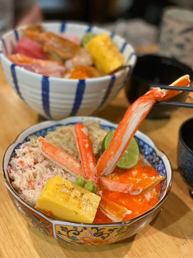 去九龍城走一趟,區內多以小店為主,除泰國菜外,也有特式cafe,一路走不難發現hidden gem💎,選了這間海鮮丼專門店去試🦞🍤二人點了兩個丼飯加一個小食🥢「蟹三味」蟹肉丼🦀為期間限定🤩!可一次過試勻三種口味,有松葉蟹肉、香箱蟹肉、蟹腳連蟹籽,蓋滿整碗飯,足料又啖啖蟹味,可擠點青檸汁提鮮,蟹迷不可錯過🤩「特選丼」配料豐盛💖,有三文魚/油金魚/吞拿魚/星鰻/帆立貝/櫻花魷魚/左口魚邊/赤蝦等🍣🍤,份量毫不吝嗇,刺身魚生新鮮,最特別是燒汁星鰻和櫻花魷魚,尤其美味😋小食「櫻花蝦炸豆腐」新鮮即炸熱辣辣上,櫻花蝦香撲鼻🦐炸豆腐醬汁一端上枱一路熱得出煙♨️,店家先預熱醬汁,以及每枱都有一壺又熱又美味的味噌湯任斟任飲,店家此等舉動令人吃得窩心🥰值得一讚👍🏻…查看更多