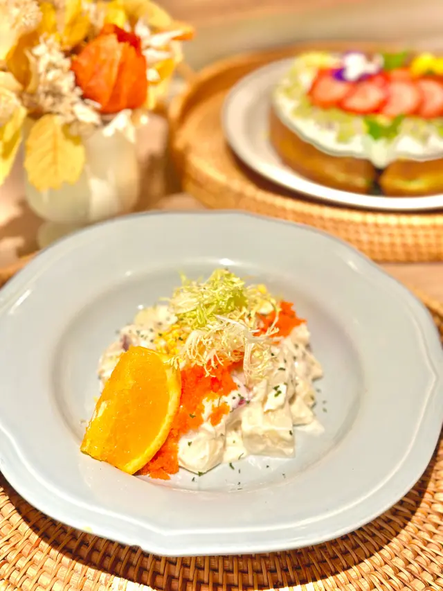 今晚到Terrace in seaside,位於九龍灣偉業街33號德福廣場1期1樓F11號舖。 之前食過海港城分店, 味道不錯,仲經常排長龍。 店內裝修文青簡約風格,是一間韓國仁川過江龍,主打韓式西式Fusion菜📋,今次我們二人點韓國蜆肉紫蘇板$138、 蟹籽雞蛋薯仔蘋果沙律$78、 綠油油蜜瓜窩夫$122、 水果忌廉三文治$62、 濟州柑橘乳酪$68、 洋甘菊桂花茶$48。