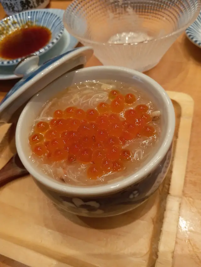 好耐冇食日本野啦, 今日就一家到呢間日式餐廳食lunch, 環境座位舒適, 好彩早d入座, 入座無耐已經差唔多客滿,等食個陣,店員送左盤前菜,好爽口又好味😋跟住首先嗌左店員推介既蟹肉海鮮蒸蛋, 三文魚比想像中仲要多, 另外入面有超多蟹肉, 再配底下既蒸蛋簡直一絕!然後係吉列廣島蠔(一客3隻), 吉列蠔好甜好好味好鮮!之後到燒明太子雞翼, 一黎到已經覺得好香, 雞翼啖啖肉, 釀左滿滿嘅明太子餡係入面店員體貼地講解加拿大海膽同北海道海膽既分別, 最後揀左特盛北海道海膽軍艦, 一黎到望到已經流哂口水, 海膽光亮潤澤, 口感嫩滑無比, 好creamy,入口即溶!超級大滿足!之後就黎到戲肉,一坐低就已經叫定既象拔蚌刺身, 刺身用左三種唔同既做法去整, 亦知道點解需要比其他菜式等更耐既時間。刺身本身已經好鮮甜, 炸完食落好爽口, 煎完再配上黑松露口感非凡, 三種食法各有優點, 一次品嚐哂3種令人回味無窮! 三文魚壽司盛合, 由各式各樣嘅三文魚組合而成嘅盛合, 每一種嘅三文魚都有佢獨特嘅味道, 但係都離唔開好味兩個字‼️另外叫左三文魚及 火炙三文魚壽司, 都十分鮮甜最後叫既原條星鰻壽司, 長度都已經令人有驚喜, 食落去勁肥美口感獨特臨走再食埋佢地個雪糕, 冇得彈!雖然中途餐廳已經客人爆滿, 但店員都係好努力咁招呼我地同介紹美食,真係戥佢地辛苦. 下次食日本野我都會再揀番呢間餐廳~…查看更多