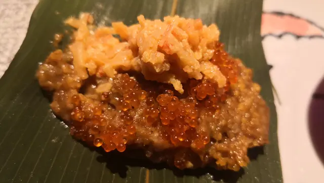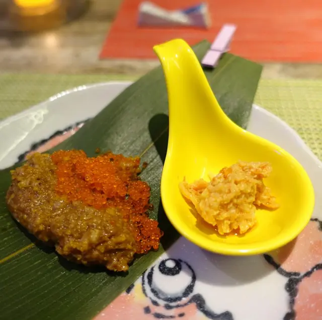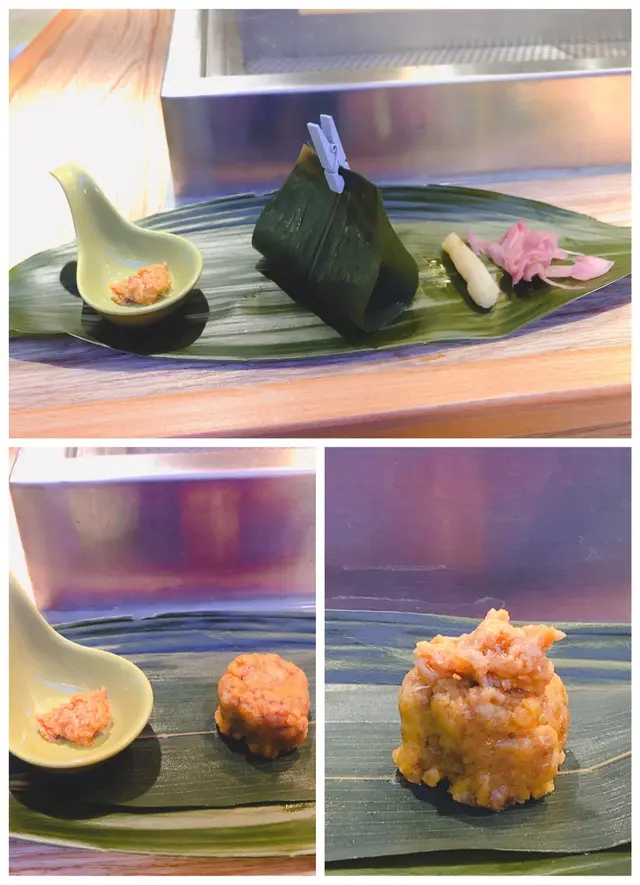 今晚吃了一餐特色的omakese一坐下, 職員便送上櫻花茶, 有13款不同形狀的杯比你揀, 每款都有不同大小, 都很美觀櫻花味, 很夠熱之後每人有一杯蘋果汁(是mix 日本清酒呢), 主要清酒味不太濃, 以蘋果汁為主1. 煙鴨胸配煙薰鵪鶉蛋 半生熟的鴨胸, 色澤鮮明, 好嫩滑2.牛油果他他配魚生粒及剌身牛油果有Washabi 味,很Rich , mix埋沙津醬及多款醬料,很滋味呢剌身非常新鮮 3.時令果物選用了日本桃, 再加上以豆腐打的醬,新鮮味佈滿桃上, 而且還有 粒粒松子呢4. 海水飲用以海澡浸蒸餾水, 對腸胃有益 海澡水對腸胃有益的飲用目的是清左之前食物味道(特別係牛油果) 因為有咸味-(海水味), 飲完好清新,refresh左 5.刺身 最特別要介紹3款魚子:橙色-三文魚子黑色-海葡萄 紅色-魚子撈清酒全部都好鮮甜, 都係第一次食~ 見識見識剌身有金像鯛 黑目鯛 可以點旁邊的 Source ~ 是由濃湯製成,點上了更鮮美 6. 羊肉湯由於木魚花較容易走味, 亦因想湯料不會走味及過熱,所以選用此方法,羊肉湯用了煮咖啡的方式, 在客人的餐台上進行虹吸 材料有蘿白及羊肉以及莞茜由於魚+羊=鮮 (餐廳理念),所以菜選用有機種植所以這樣煮出來的湯有鮮味, 材料亦不會煮到老~ 7.牛肉漢堡這只有香港人才懂了食物用料的駐車違反米紙, 配上牛肉漢堡, 就是牛肉乾的意思,即係抄牌呢~很有心思的菜式構思~ 8. 鰻魚用了乳猪的燒法-配上S &B 生淑粉吃, 非常香脆呢~ 9. 豆紙壽司牡丹蝦 配上特制source , 仲有翠玉瓜賣相已非常典雅! 10. 盬燒馬友魚以獅子山下 的歌詞配上生菜豆腐及盬燒馬友魚正正體現香港人精神馬友魚=咸魚咸魚白菜也好好味 11蟹膏壽司 以傳統果蒸稷的idea 龍蝦頭湯 and煮成的燸米非常入味切合hk style traditional 12 香蔥吞拿魚壽司 以春卷皮包著的壽司,很有新鮮感配上低溫鵝肝, 鵝肝以酒浸煮-酒味入口即溶!!! 壽司飯窩巴造的,很special ~ 13. 焦糖多士有自家制的green tea ice cream , 濃濃的綠茶味令人回味無窮 14.最後Happy ending 以一杯巨峰提子汁扮紅酒作結是次omakese 充滿了香港情懷,亦充分顯現出廚師的精心創作呢~ …查看更多