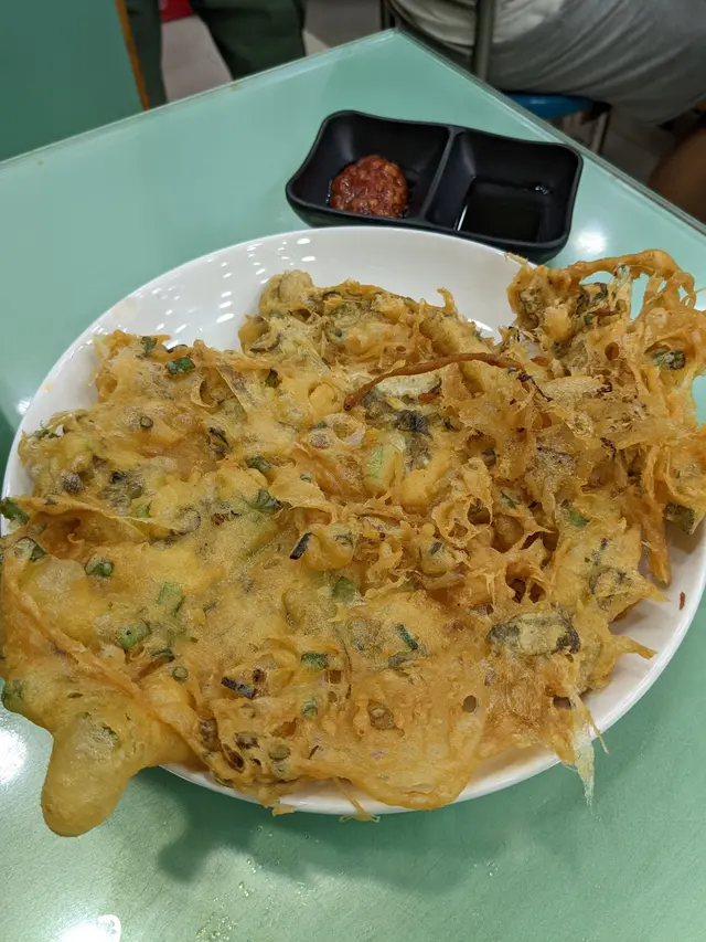 這天我們一行六人來到打冷(潮州食物),第一次來的,覺得他們座位安排夠闊落,不用吃得很擠擁,裝修是一般的打冷舖格局,枱及座位感覺到乾淨,餐具衛生。味道一般,打冷菜式來說的話不是很突出,潮式煎蠔餅及炸白飯魚都炸得很脆,但蠔餅蠔肉很少,炸粉居多。原本想點豉椒炒蜆,服務員推介時令的薄殼,第一次吃,沒什麼特別而且份量很少。滷水雙併叫了兩碟但味道很淡