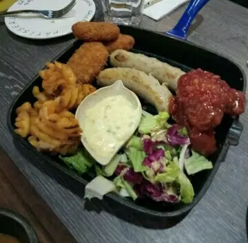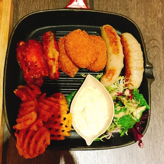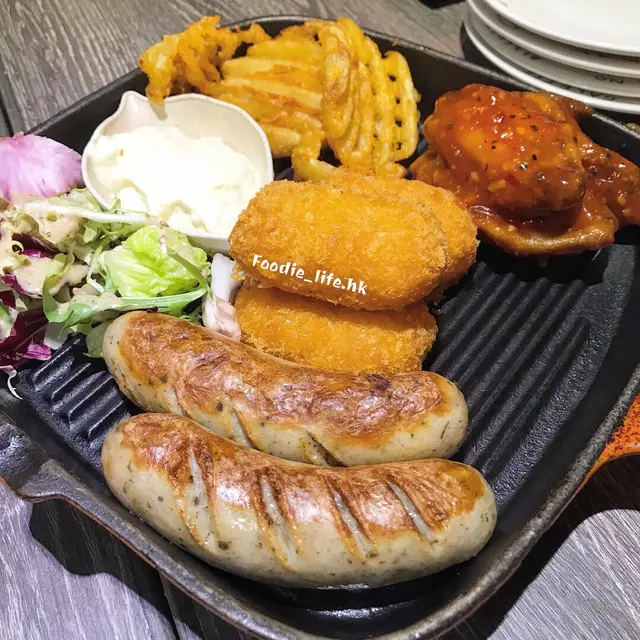 元宵佳節,公務繁忙,沒有閒情賞花燈,放工也只能約在中心區旺角,吃一個大時大節最受歡迎的鐵板餐。一百元以下的鐵板餐,在鬧市區難找,這裏是難得的地方。最近多吃肉類,故點了一個香煎比目魚扒配刁草牛油忌廉汁($99)。比目魚份量比想像中多,燙熱的鐵板盛出比目魚的煎魚香。蔬菜在熱燙燙的鐵板上容易燒焦,甫上桌就應澆上隨碟的醬汁,還要澆到蔬菜和薯蓉底,否則過了一會,底層因高温變焦了。友人點了鐵板燒美國穀飼肉眼 8oz ($99),肉味濃郁,細細嘴嚼,鐵板烤過的肉香漫漫滲出,比比目魚更好吃。芝士焗西蘭花($68)。中間的芝士較濃稠,旁邊的芝士混和了西蘭花的水份。中間的芝士有拉絲的效果,旁邊的芝士拌著飯吃也不錯。芝士的量多,我們還是把所有的芝士吃完。西蘭花沒有焗成乾花,內裏仍保留水份,與鐵扒肉類伴吃,總覺會減點油膩感。街坊小食拼盤(水牛城雞翼、吉列蟹肉忌廉薯餅、豬肉腸、薯格)($108),我最喜愛的食物,鄰座剛好也點了一個。我最喜歡的是脆而厚身的德國腸,不會過鹹。我同樣喜歡水牛城雞翼,每一隻外層均勻地包裹着濃厚的惹味醬汁。原以為已因醬汁重重包裹而變得軟稔的雞翼,咬一口才發現內裏蘊藏的外脆內軟,沒有因醬汁而影響口感,雞肉厚而多汁。薯格香脆新鮮,友人說不用沾醬也十分香脆可口。吉列蟹肉忌廉薯餅同樣香脆,但內餡添了一分柔軟。在各式各樣的食材拼搭下,少量新鮮的沙律菜反成了真正的伴碟。…查看更多