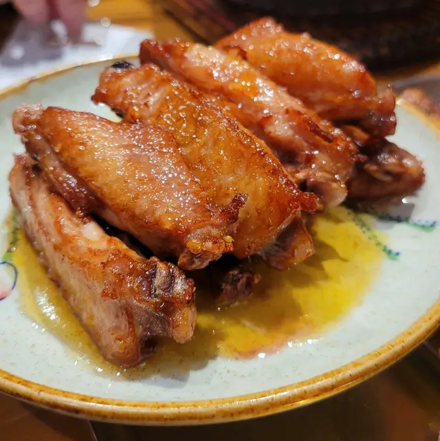 帶住今世情人(老公)同前世情人(仔仔)到佐敦搵食,見到呢間曾經被介紹嘅鋪頭響年初四唔駛排長龍就入咗去。叫咗個兩粉,一小食同送咗個前菜。炙燒手撕雞湯粉絲拼米粉($68)- 燒過嘅雞絲真係香到爆,先試原味湯底,清雞湯味易入口,再拮個檸檬,係如虎添翼,鮮酸味令人流口水。雞絲唔鞋,加埋個炙燒香味一絕。當中嘅陪菜腸粉亦係有趣地方,再試啖辣醬,整體真係非試不可。十三飛($80)- 湯底濃濃,同雞湯完全唔同風格,配上乾蔥又係另一風味。安格斯肥牛係正常原味,唔會差。牛肋肉夠淋夠入味,比肥牛吸引。食埋腸粉就好滿足。西多雞翼($38)- 糖漿甜牛油香,點會唔好食,加埋香脆,真係要快手享用。蝦片(免費)…查看更多