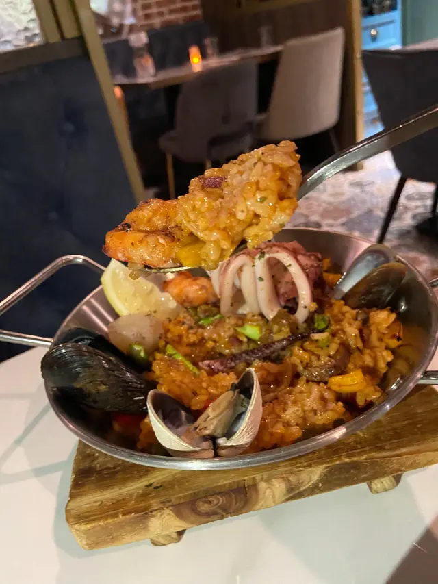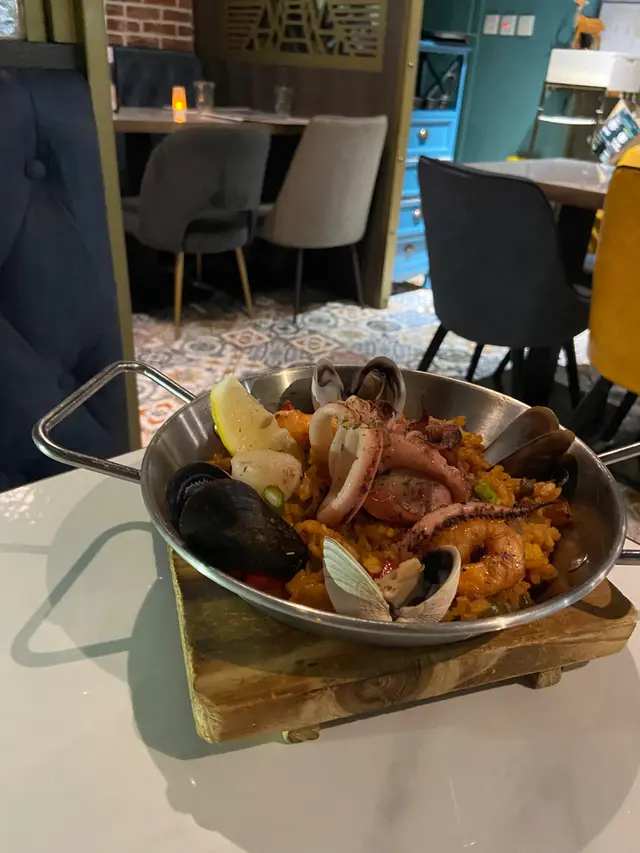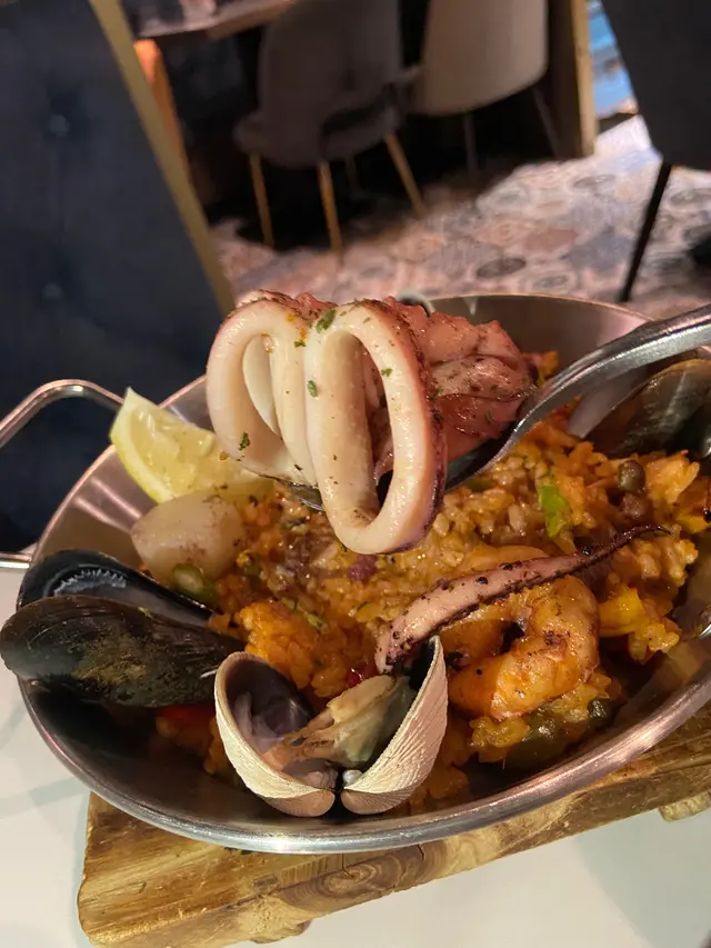 一餐好好味嘅西班牙菜~ 餐廳嘅裝修都幾特別啲職員嘅服務態度都唔錯!安排左我哋坐響窗口位仲可以睇到對面Office啲人仲響度返緊工做緊嘢😂😂😂個心都食得開心啲!一去到見到成間餐廳都冇人仲諗緊好唔好入去,但係因為搵咗一陣先搵到間餐廳所以我哋都係入咗去食...喺Menu同埋食評見到個西班牙海鮮飯好好食所以我哋就叫左一個再加多一個crab cake.... 個西班牙飯嘅份量都幾大夠兩到三個人食,個飯好入味好好味一d都唔硬$288都幾抵食..好多海鮮係上高..再加埋個crab cake兩個人已經食到好飽...最後我哋都叫多咗一個earl grey cream brulee !見到佢哋個Menu仲有好多甜品希望下次可以試埋其他甜品👍🏻👍🏻…查看更多