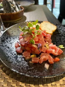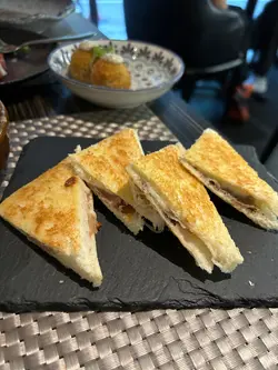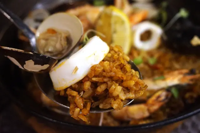 一行8人在天后東岸公園玩樂之後,在附近內街找到這間Fusion 餐廳,位置不算張揚,招牌西班牙大鍋飯卻精準踩中我們一行人「分享」這個核心需求。主打Fusion西班牙風味與亞洲元素,它的巧思不在顛覆傳統,而在透過菜餚設計,讓亞洲人吃西班牙菜式的體驗更好。Tapas的呈現堪稱分享範本。 36個月風乾的伊比利亞黑毛豬Ham切片薄至透光,鹹香帶著堅果味。 Anchovy toast由番茄泥加上傳統海鮮魚類Anchovy,橄欖油煸出的海鮮及番茄鮮味滲入傳統西班牙麵包,不浪費一絲風味,味道無與倫比的合拍。Tortilla de patatas西班牙蛋餅直徑約莫15 CM,像個精緻的圓玉盤。金黃油亮的餅身瞧著就讓人歡喜,用刀輕輕一切,內裡竟藏著流心的驚喜——柔滑的蛋液裹挾著粉糯的薯仔粒,細碎的Ham粒藏在其中,偶爾咬到脆甜的洋蔥條,幾種滋味在舌尖層層綻放。這般外實內流心的做法實在新奇,剛切開時,那微微晃動的流心彷彿帶著溫度,混著薯仔香與Ham的鹹鮮,一口下去,滿是溫柔又豐盈的口感。 Codfish croquette的麵撈比例調校得宜,外酥裡嫩的狀態能維持片刻,分享時不必爭搶剛出鍋的那一口。這些Tapas的組合,自然適合席間傳遞,你嚐一塊我品一口,互動感自現。西班牙海鮮飯Seafood Paella則是多人分享的重頭戲。傳統大鑄鐵鍋端上桌時,藏紅花染就的橙黃米粒還冒著熱氣,大蝦、青口、魷魚分佈均勻,對亞洲人來說,ROJO式「歐式7分熟」的米粒帶著恰到好處的硬度,既保留傳統口感,又照顧了亞洲食客對「熟度」的偏好。 3-4人分享一鍋,每個人都能分到等量的海鮮和米飯,避免了「搶食」的尷尬。搭配西班牙國酒Sangria,橙片與檸檬的酸甜被微調得更柔和,冰鎮後解膩,舉杯時的碰盞聲,恰是分享氛圍的點綴。朋友聚餐,在於把「分享」從口號變成了可感知的細節——分量適配、風味兼容、食用節奏可控。不必追求驚艷,卻能感受圍坐分享的過程,多幾分自在與協調。最後也分享西班牙National dish, Churros 及Basque cheesecake,當然我們也分享了當晚的賬單,每人港紙300左右,總之一行8人度過了歡樂的一晚。