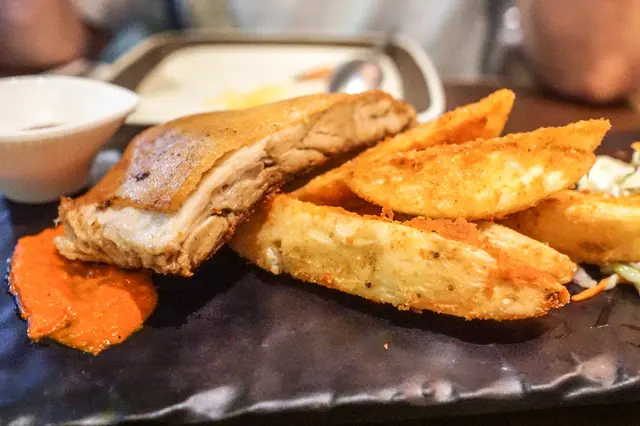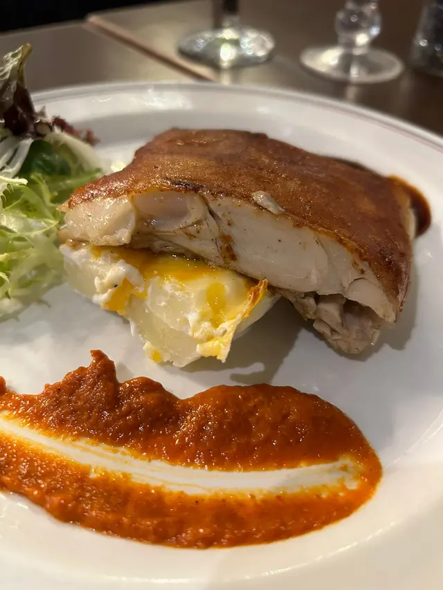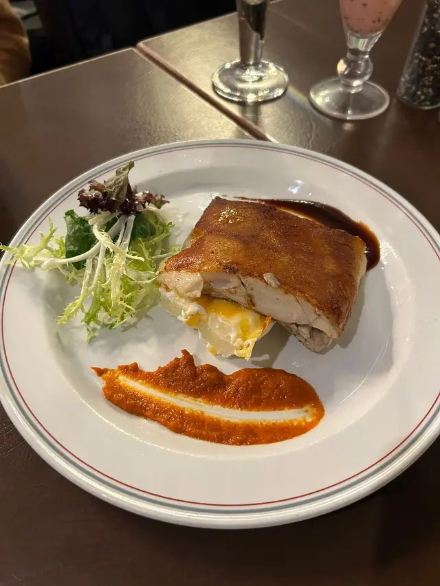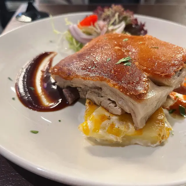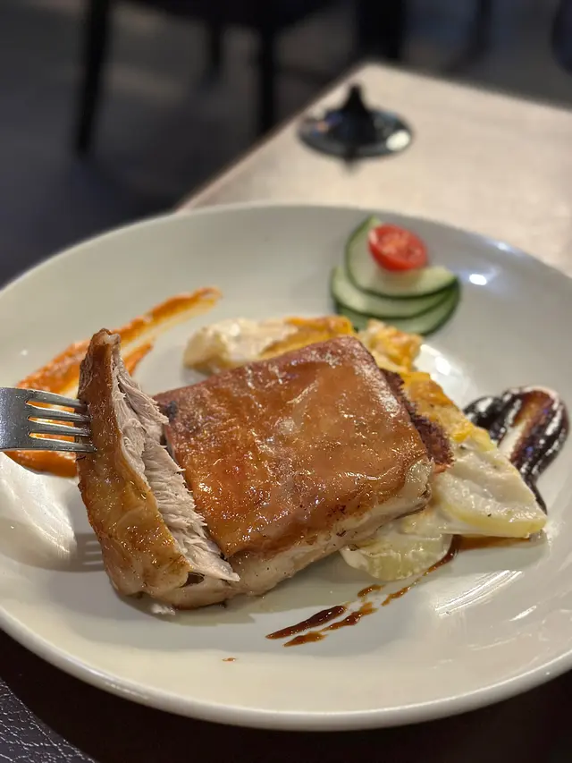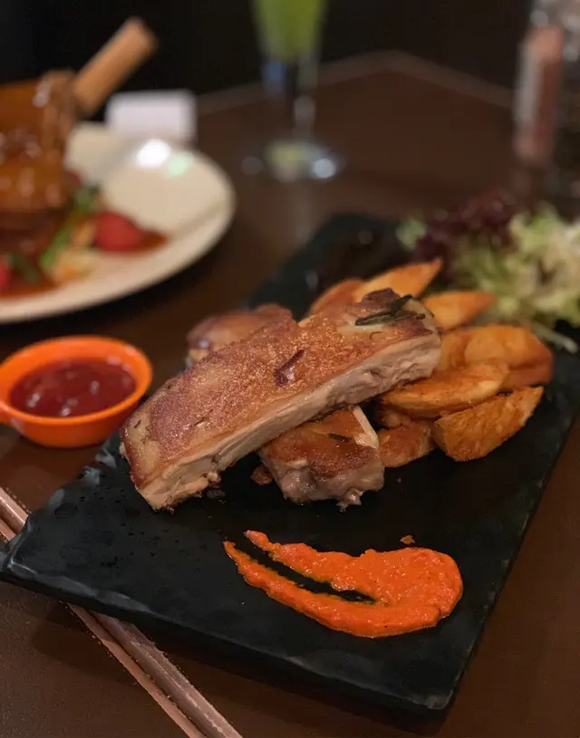 今日喺沙田考完車,好開心一take pass🤩,於是去咗大圍一間西餐廳慶祝。餐廳距離地鐵站行4分鐘就到,非常方便,有得食乳豬又飲下酒慶祝,好寫意😎。-💛露荀帕爾瑪火腿沙律 $99一上碟就見到有滿滿嘅巴馬火腿,底下有露荀同羅馬生菜,露荀清甜生菜爽脆新鮮,加上巴馬火腿口感柔軟,味道微鹹🥰,做前菜都幾好~-💛西班牙脆皮乳豬配彩椒汁 $229西班牙脆皮乳豬肥瘦適中,皮脆肉嫩,入口即融,簡直不得了😎與平時食嘅中式乳豬有啲唔同,依個乳豬肉質更加鬆化😋,搭配薯仔做伴菜同醬料(有甜醬同帶微酸微辛嘅彩椒汁),係出面唔會食到嘅味道!👍🏻-💛芝士大網菇黑松露意粉 $179忌廉夠creamy,黑松露味道突出,份量亦都十足。意粉有好多野菌,口感唔錯,唔會過於軟爛🤭。大網菇經過芝士烤焗之後,鎖汁得嚟又惹味🤤,整體唔會令人覺得膩,兩個人share 剛剛好🥰。-💛Mojito $88朋友叫嘅依杯Mojito青檸味max,超級refreshing😍。唔苦得嚟仲帶啲青檸檬香,而且有薄荷葉助攻,令人覺得精神爽利,而且解膩消滯🤩。-💛Strawberry Colada $78依杯飲品質地偏濃稠,裏面有士多啤梨、菠蘿汁、椰奶同牛奶,飲落幾似奶昔,甜度適中😍。個人最鍾意係底部留有一啲果籽,咬落有一啲啲口感,見好多人都有叫,確實唔錯😉。-…查看更多
