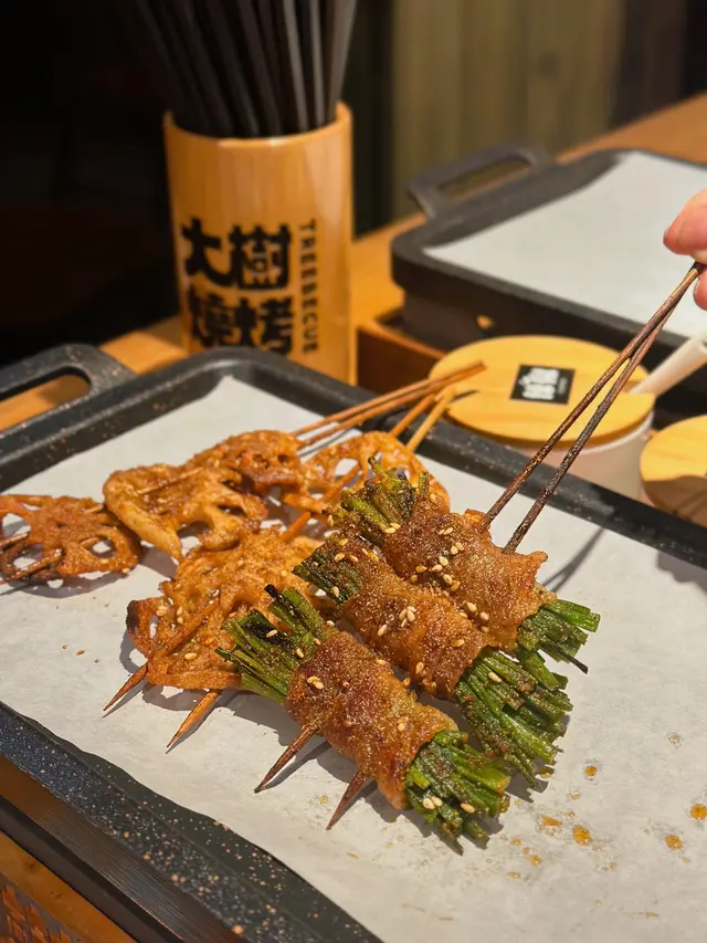 一個非常大的肥茄子切開兩邊,上面鋪滿了蒜蓉、少許辣椒碎和蔥,燒得非常香,口感鮮嫩,吸入了蒜蓉同油香。金菇肥牛卷口感一般,可能牛肉燒得比較熟,口感有點硬,沒有特別出色嘅地方。豚肉韭菜花卷讓人非常失望,韭菜很老,吃起來有渣,而且豚肉非常薄非常細,基本上沒有吃到什麽肉,可以說是不合格。即開即燒生蠔在生蠔上鋪滿了蒜蓉進行燒烤,味道非常足,但是生蠔的質素一般,燒烤之後變得很細少,而且燒得過熟,口感很硬很韌,咬不開,不推薦。即開即燒大扇貝同樣是在大扇貝上鋪滿了蒜蓉進行燒烤,汁料非常美味,但燒烤之後扇貝變得非常細少,燒得過熟。新鮮魷魚鬚