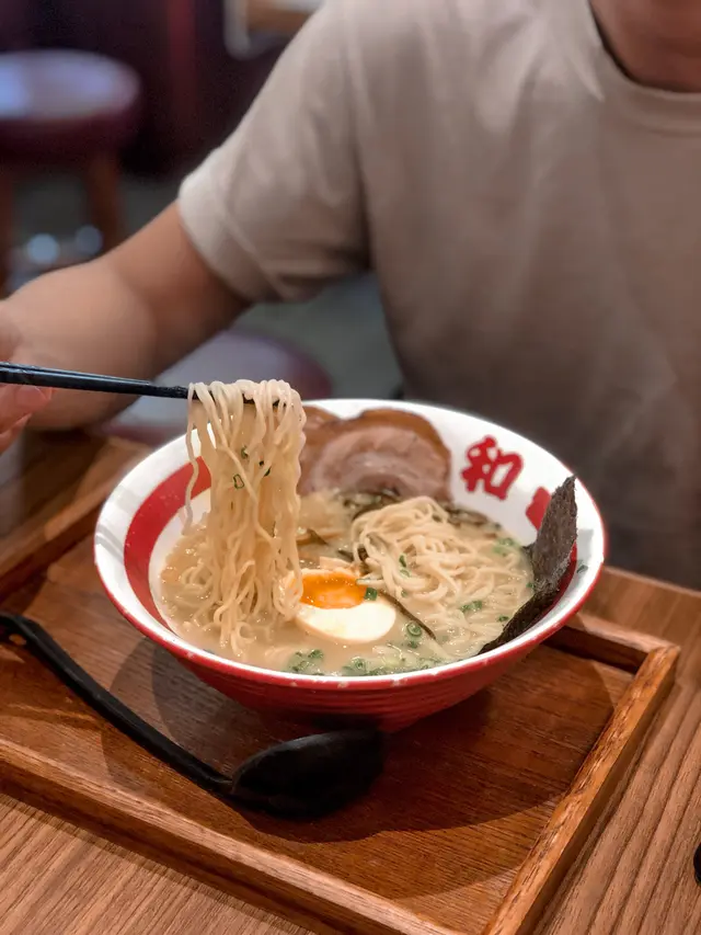 用餐時間 (9:30pm late dinner)食物 🍜為試真章(決定走蔥蒜),豚骨原味拉麵湯底出色,濃味而不鹹,湯底掛在麵條上,滋味無窮廚師特登為我哋做一個味噌素食拉麵🥦,(叉燒轉木耳絲),糖心蛋俾埋我 lol,味噌味正常,不過不失,但態度用心可嘉!茄子天婦羅 🍆,炸醬薄,食材新鮮,好食,但個人喜歡醬汁比較酸,醬汁有進步空間.酒 🍶有生啤酒Suntory,個人特別欣賞餐廳有半杯(half pint)選擇,同埋細枝hoegaarden,適合一人之境,另外有其他日本酒選擇.店員 🤓問佢有冇素食選擇,會耐心同廚房溝通,再認真覆,唔會Hea答。俾完兩杯凍水,叫佢比杯暖水唔會黑面.餐廳氛圍 🎶 最鍾意見到日式門口掛日式燈籠,餐廳播住日本音樂好有日本居酒屋feel🏮🏮 老闆見我對黑膠有興趣,即刻播俾我聽,仲要係谷村新司 🤩…查看更多