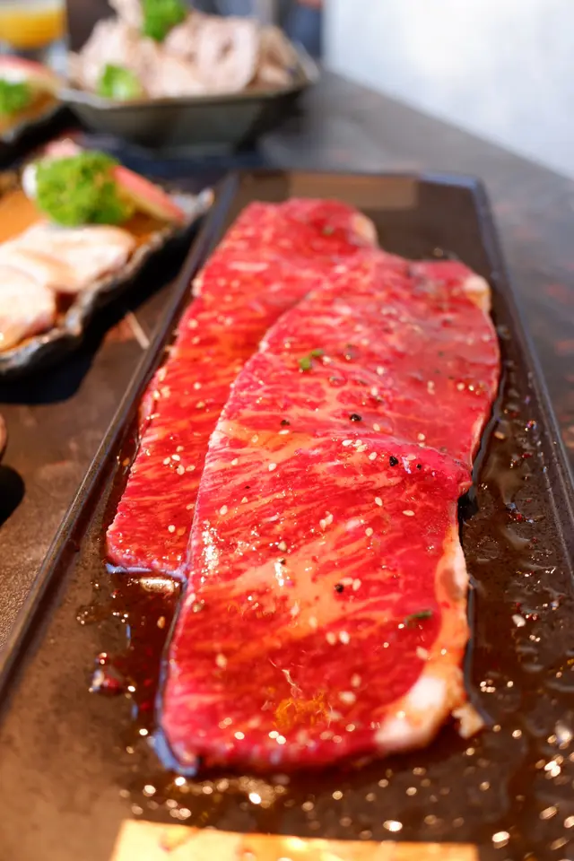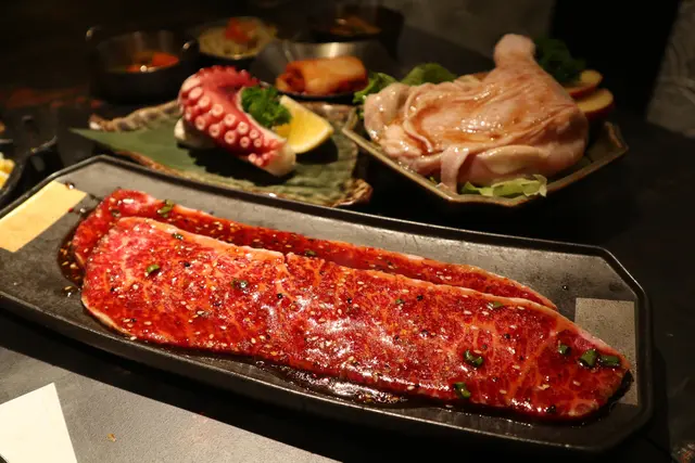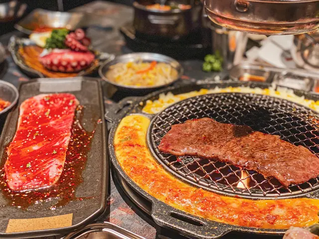 Sizzling sounds of cooking wagyu & Iberico pork belly at our table, those smells of sweet and tender meat with side dishes filling around, made a perfect dinner night for beef/meat lovers 朋友係個牛魔王,無牛不歡,比佢掹咗我嚟客串做陪食專員!以食物質素評價、和牛同黑毛豬五花肉等係高汁!職員們全都態度友善,主動幫忙燒肉、換餐具和添配菜,服務很好Prime Chunk Tail Flap (Salted)鹽燒食堂牛小排 >一上桌見到油花分佈均勻且密集,肉片燒出嚟牛脂味濃酥香鬆軟,因已略用鹽調味、唔駛點醬食都good! 最鍾意食呢個部位Mega Wagyu Boneless Short Ribs 豪快和牛燒 >呢兩大塊和牛片好好味,肉汁豐腴夠牛味Jeju Mega Iberico Pork Belly 濟州豪快黑毛豬五花肉>超長又大塊勁誇張!職員專業地幫手一邊燒一邊講解不同的燒肉方法,長知識!燒肉非常甘香有咬口,我用泡菜和蔬菜包住嚟食、解膩又好味Braised Beef Short Rib with Rice 燉牛肋骨 配白飯>牛肋骨好大舊、湯頭甜,大胃王朋友撈飯食清晒成碗飯Potato and Pork Ribs Soup with Rice薯仔排骨湯 配白飯>有3大塊排骨啖啖肉好滋味,仲有厚肉冬菇、個湯超甜!當晚配菜原來唔係薯仔係白蘿蔔,好清甜又索晒啲湯汁好腍好好食Cheese Oysters 芝士生蠔>啲蠔算飽滿大隻又新鮮,剛燒好熱辣辣又唔錯Plum and Lime Soda 梅子青檸梳打>朋友話呢款幾好飲,青檸配梅子味道特別清新Tangerine Soda柑橘梳打>我飲呢杯幾好唔太甜,裡面粒柑橘味道仲好清甜*呢度韓式涼拌小菜亦唔錯,個人喜歡泡菜不太辣帶點甜味、車厘茄夠鮮甜、醃白蘿蔔爽脆咬到颯颯聲、仲有沙律菜可以包燒肉食;圓拱形燒烤爐兩邊放了泡菜雞蛋和芝士栗米可以點肉食,令口味多啲變化…查看更多