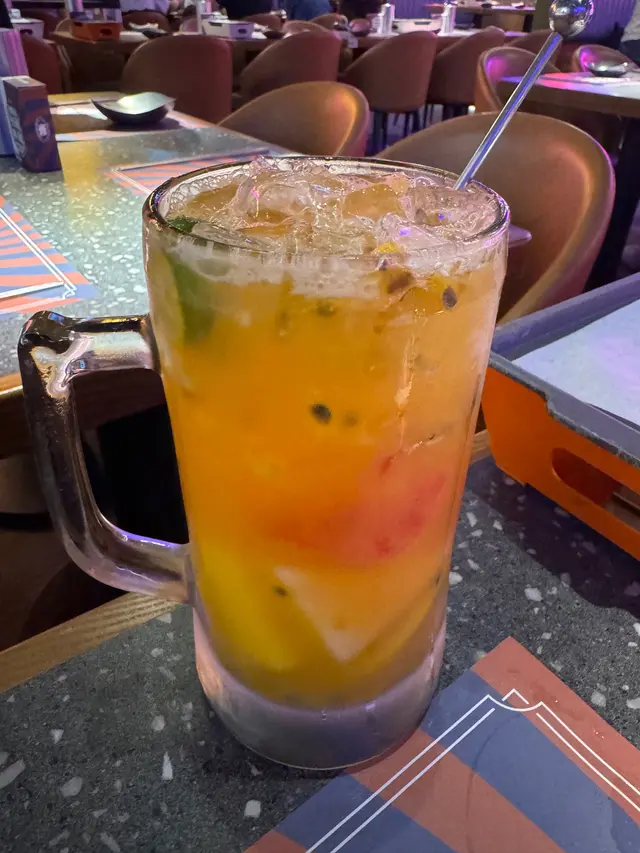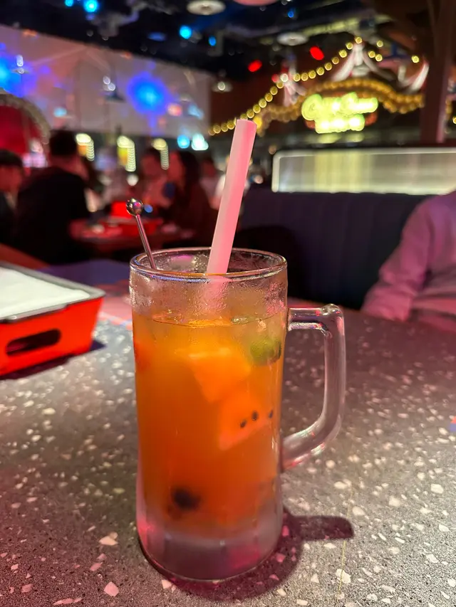最近見到有好多人介紹呢間餐廳特別之處係佢每晚7點都有歌手駐場表演歌手把聲出乎意料 唱舊歌唱出故事咁加上似係拉斯維加斯娛樂場裝潢仲有現場霓虹燈光 令到成個氣氛好好好適合一大班人嚟食住串燒飲酒傾計間嘢仲要開到凌晨三點 可以慢慢享受我哋叫咗以下幾樣嘢食- - - - - - - - - - - - - - - - - - - - - - - - -1. 皇牌藤椒烤魚(江團)江團係指魚嘅種類 另外仲有黔魚可揀味道分為辣嘅招牌香辣烤魚、山城毛血旺烤魚唔辣就有惹味蒜香烤魚、秘制醬香烤魚個人唔係幾食得辣 所以揀咗青藤椒冇咁辣嚟到有個大爐烤住條魚 等佢煮8分鐘味道會更濃郁好鐘意藤椒有少少麻香 但又唔會搶晒啲味辣嘅刺激程度比花椒細 用嚟煮魚完全唔腥魚肉都好易起 唔會食到有骨黐住熱辣辣又軟嫩嘅魚肉 充滿鮮香舒麻湯汁其實好想要碗白飯XD2. 燒春雞配薯條見到呢個係新菜單 鍾意食雞嘅我當然要試果然係冇叫錯 因為好少餐廳係整到咁好食嚟到嗰陣已經熱辣辣啦 用刀切開嗰陣真係見證住佢啲肉汁流落隻碟度同埋啲熱煙即刻冒上嚟 雞皮微微焦香肉質好似春雞嘅年齡咁年輕嫩滑配埋炸到啱啱好嘅薯條 唔會淋晒/太硬外層酥脆 內裡保持到柔軟口感3. 東北燒烤(雞腎、韮菜)+港式炭烤(雞軟骨)串燒都有分成兩種 滿足大眾唔同需求兩者嘅烤制方式同口味有啲唔同東北燒烤口味偏重 叫咗雞腎同韮菜上面都會灑上好多辣椒粉同其他調味料港式炭烤口味相對溫和 叫咗雞軟骨冇咩調味料而突出佢嘅原汁原味串燒配埋佢嘅手工啤酒 好爽~4. 超級水果茶+手工啤酒 Goose Island Angel goose 5%水果茶好大杯 有好多唔同水果果肉喺入面包括百香果、檸檬、菠蘿、西瓜、哈密瓜、藍莓望落豐富多彩 飲落感覺都好清新多汁甜甜哋又帶有微酸 令人開胃 好解油膩手工啤酒杯內透出金黃色調 望落感覺清澈少少麥芽甜味 帶有花香同柑橘嘅香氣 幾易入口而且酒精度數唔高 好啱小酌移情…查看更多