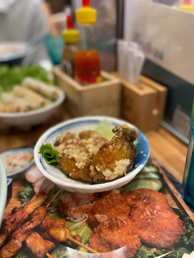 今日收工約咗妹妹係附近食quick dinner,深水埗真係好多餐廳選擇,今次我哋就揀咗無論午市晚市peak hours 都一定爆場嘅越萊!越萊經典撈檬($66 套餐)超級豐富同毫不吝嗇嘅份量,三款主菜包括香茅牛肉、厚切燒豬扒、豬頸肉,個人最鍾意油脂十足嘅燒豬頸肉,配菜有酸紅白蘿蔔絲、青瓜絲,淋上特製魚露酸甜汁撈匀,係超岩夏天食嘅開胃惹味菜式!網皮春卷撈檬($48套餐)有四件自製手工春卷,炸到香脆嘅絲網皮包住肉碎、蘿蔔內餡,香口到好似食緊薯片!越萊蒜香牛油雞翼($26)超邪惡嘅炸雞翼再淋上蒜香牛油汁,比較油膩但雞肉幾嫩滑。河內蝦仁米紙卷($26)超鐘意半透明煙韌米紙,餡料係傳統做法,米紙餅皮包住生菜、檬粉同鮮蝦,口感清新爽口!全日套餐包一碗湯粉/檬粉/飯加一杯熱柑桔蜜,轉其他飲品加$6-$10,姐係最平$48就已經可以埋單,另外呢度仲有越南包揀,想食得light啲都得!…查看更多