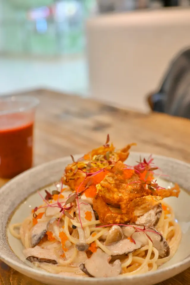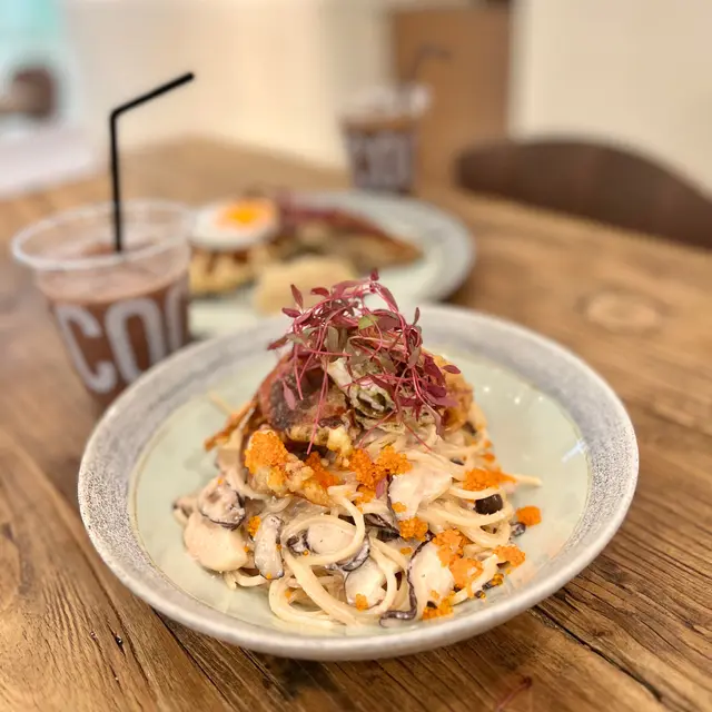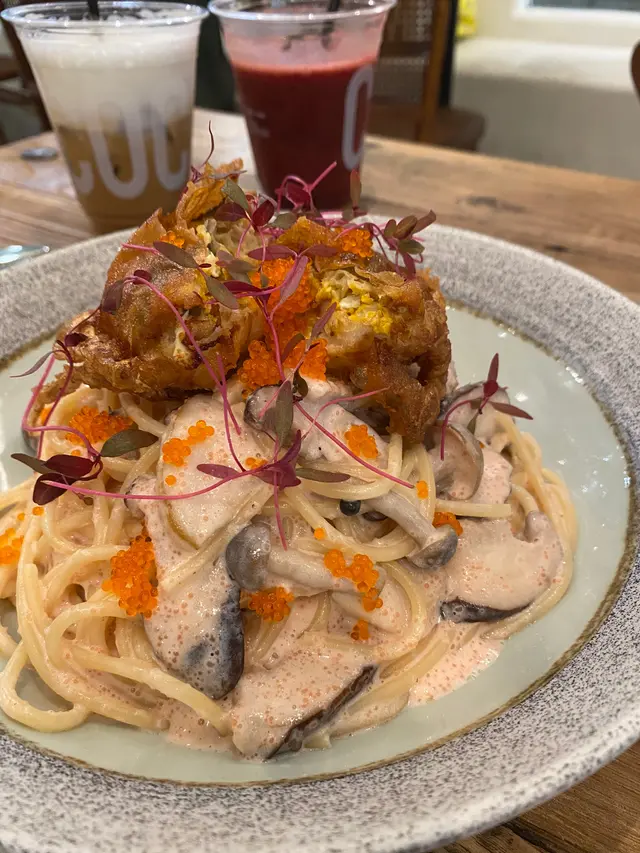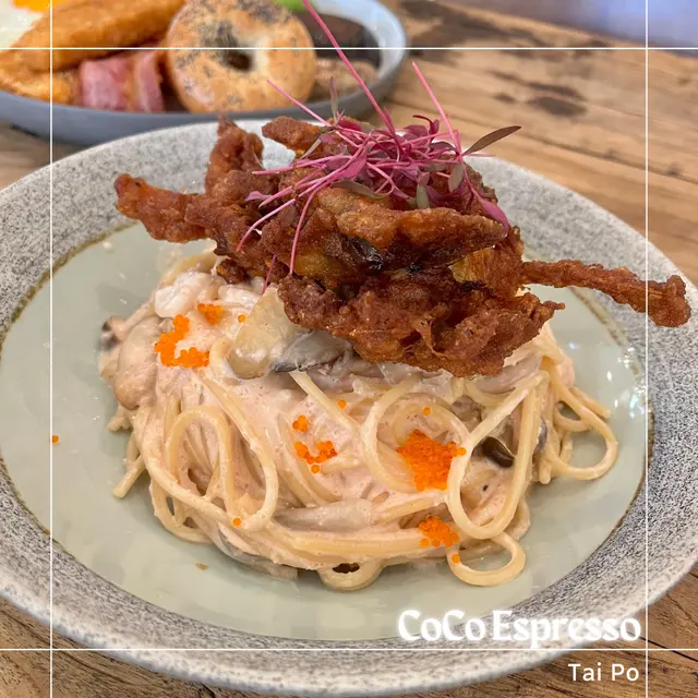 朋友相約係大埔食一間有波希米亞風裝潢的cafe,去到果然無失望。裝修白雪雪好舒適,最緊要係野食好好味😋慢煮法式油封鴨脾 配牛角酥窩夫🧇 $138鴨脾皮脆煎香的皮呈金黃色,令人流曬口水🤤牛角酥窩夫煙韌得黎又有牛角酥既酥香🤤可上少許酸菜解鴨脾既油膩,一絕!軟殼蟹明太子忌廉意粉$138忌廉Creamy得黎配上酥脆既軟殼蟹,加埋既意粉口感係無得輸🍝肉桂蘋果牛角酥窩夫🧇 $88肉桂愛好者唔使諗,必食!雪糕甜品亦唔會死甜!加上楓糖拉絲🤤諗起都開心🥳另叫左飲品Dirty$42Mint tea$48…查看更多