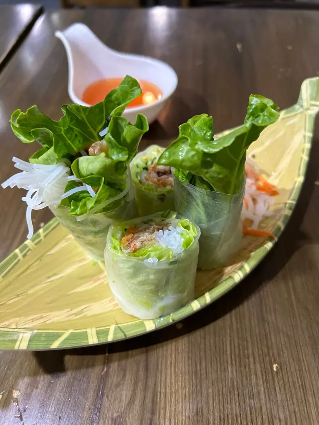 過開嚟沙田圍呢邊搵個朋友聚聚佢話呢間越越南菜好食又抵食於是呢晚試試佢~首先吸引眼球嘅係佢幅超巨型壁畫離遠都見到呢度有間越南菜餐廳入面原來好大好闊落有大枱有卡位👍🏻👍🏻 不錯👍🏻❤️軟殼蟹米紙卷❤️$62食親越南菜我都鍾意嗌米紙卷佢呢份米紙卷大大份好足料個軟殼蟹都啖啖肉😍配埋佢個魚露好好食❤️法式蒜蓉牛油雞翼❤️$52另一個食越菜必點嘅一定係牛油雞翼佢都做得唔錯👍🏻個蒜蓉牛油味勁香炸得夠香口但入面好juicy🤤一個字:正👍🏻❤️大越海南雞飯❤️$73朋友點咗海南雞飯我試咗個雞非常滑,唔會過生或過熟👍🏻點埋佢個辣汁好好味👍🏻👍🏻❤️越式烤豬頸肉湯金邊粉❤️$63而我就點咗湯金邊粉第一個觀感係好大碗😂😂唔似出面嗰啲夾兩箸就食完我通常都習慣試下個湯先要讚讚佢呢個湯底幾鮮甜👍🏻唔係嗰啲食完好口渴嘅味精湯睇返餐廳介紹原來話個湯用雞殼+藥材熬成唔怪得咁鮮味👍🏻另外佢個烤豬頸肉都好得整到脆邊又唔柴切得厚薄適中口感好好👍🏻👍🏻下次如果試其他主食都會想點個豬頸肉做小食😂…查看更多