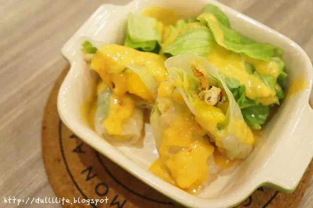 又係寫café~~^^呢間係俾裝修吸引而入左去, 野食如何就要試下先知喇~~環境好舒服休閒, 有D小品裝飾, 歐陸風好重~~軟殼蟹芒果米紙卷, 推介!個外型好有歐陸STYLE, 個卷係用生菜、米紙而包成。裹面既軟殼蟹炸得好香口, 加埋上面層既新鮮芒果, 一口咬下去, 先是林林地的米紙到脆脆既生菜及軟殼蟹, 芒果的甜酸混合, 味道好豐富!!!!!!!黎個熱小菜石鍋卷蒽花一口牛暖一暖個胃先, 上枱時個鍋熱辣辣, 出哂煙, 牛肉味香噴噴~~食慾大增牛肉好Juicy又唔太油, 加埋蒽花好惹味!!!!芝士鵝肝汁雞扒軟殼蟹焗飯軟殼蟹上枱時好脆身!!! 雞扒夠淋, 雖然有少少乾身, 但係就夠香口,個飯底足料, 好香口好香蛋味, 而且一D都唔膩!!!!!!下次可以再食!!叫左3樣野好飽好抵食,價錢都叫合理~~~!…查看更多