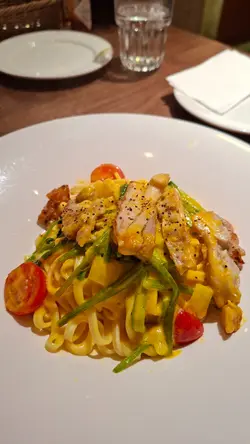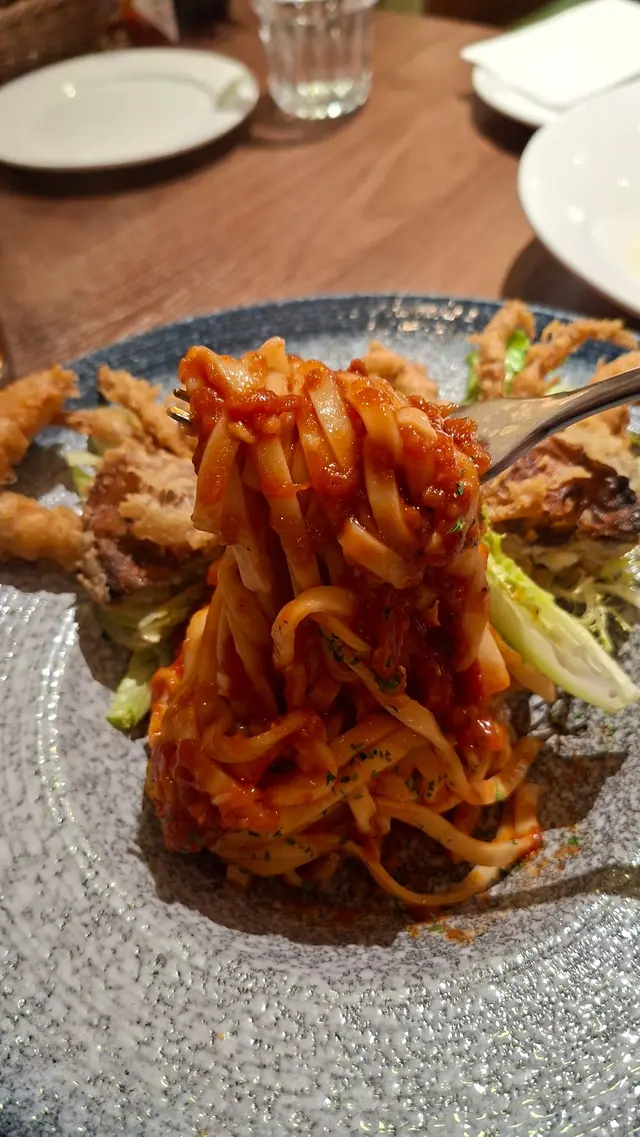 意粉狂熱軟殼蟹配蕃茄濃汁鮮製意粉軟殼蟹配蕃茄濃汁鮮製意粉,色彩繽紛,蕃茄濃汁酸甜味令人食慾大開。軟殼蟹外酥內嫩,味道鮮美。意粉口感彈牙且吸附咗醬汁,加上香草提味,令每一口都充滿驚喜。香烤香草羊架香烤香草羊架係呢餐其中一個亮點。羊架外皮烤得金黃酥脆,肉質鮮嫩,肥膏部分爆汁,香草嘅香氣令人陶醉。搭配燒汁恰到好處,亦增添咗層次感。日本抹茶窩夫日本抹茶窩夫非常精美吸引。窩夫外脆內軟,香濃抹茶香氣令人愉悅。搭配嘅紅豆,平衡咗抹茶微微嘅苦澀,令整體味道更加柔和。呢個甜品適合愛好抹茶嘅人,因為實在令人難以抗拒。Pastaholic Handmade Tiramisu Pastaholic Handmade Tiramisu係餐廳推介嘅必點甜品。口感層次分明,手指餅浸滿濃厚備長炭炭燒咖啡,咖啡香氣濃郁,芝士味醇厚,帶來愉悅嘅味覺享受。甜度適中,絕對唔會令人覺得膩口,整體口感濕潤軟滑,而且微微嘅酒精更帶出刺激感。…查看更多