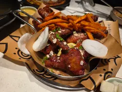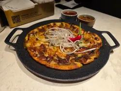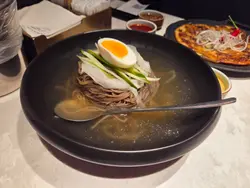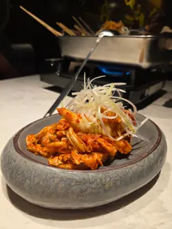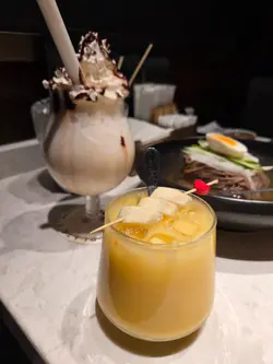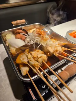 香港天氣溫度逐漸地下降開始想吃點熱騰騰的料理是日便選擇了這間韓國菜餐廳下單後一分鐘店員便迅速準備gas爐先送上魚介湯鍋鍋內的熱泡冒起魚糕串種類花款很多口感軟糯可口農家鮮泡菜口感爽口帶點微辣果然是韓國菜不可或缺的靈魂半半炸雞點了大邱辣醬首爾醬油口味大邱辣醬辛辣感剌激味蕾辛辣味與雞肉配合得剛剛好醬油解一解辛辣感又是另一番風味八爪魚煎餅是我另一款韓國菜最愛滿滿八爪魚粒配合炸得香脆的粉漿點了水冷麵其彈牙的麵質帶有冰涼感飲品點了香蕉奶米酒和海鹽焦糖沙冰感覺有點像奶昔帶來一個微熏的氣氛幸福的晚餐以甜蜜的句號作結…查看更多