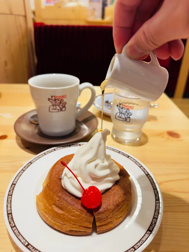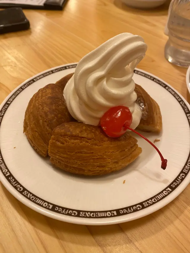 呢間過江龍咖啡店啱啱開業嘅時候請唔夠廚師(經理自己講🙈),所以長期排曬隊💩咁啱呢日放假又唔太full就入去試試😎首先嚟到嘅係KOMEDA咖啡,跟餐只需要$20,可以免費加豆奶,聞起嚟都幾香,飲落亦都冇苦澀味,中規中矩👌🏻本來想食紅酒燉牛肉,但嗰日冇曬,所以就叫咗咖喱意粉($78),仲標明同新宿中村屋共同研發😆估唔到「因禍得福」,意粉質感好特別,有少少彈牙、好似烏冬咁,但又未至於好煙韌,我同朋友都超鍾意🥰雖然餐牌有提示醬汁偏辣,但只係香港人嘅小辣,而且唔會長留喺個口度,比起普通日式咖啡味道得確更豐富😝因為個意粉太好味,塊牛油多士相對之下就好普通😉好少可見炸豬排配味噌,通常都係啡色嗰隻豬扒醬,所以就叫咗份三文治試試($75),可以揀切兩舊定四舊🥪本來諗住兩個人食就分成2份,點知個包幾大下,結果都係要自己再切多刀😂豬扒新鮮炸起超級熱辣辣,但食完第一啖我哋都好疑惑,點解會有咁濃嘅酒味🤔或者明古屋嘅味噌係咁,但同想像中真係好大出入🤣又或者係因為沙律醬加芥末再加味噌就出現呢浸味,其實總體嚟講唔差,麵包亦都有烘過、夠鬆軟,不過普通嗰款三文治可能更好😛最後當然唔少得甜品 - 迷你冰與火($48)🤩雪糕係淡淡嘅牛奶味,但唔算濃郁,口感比較似新地雪糕🙈丹麥麵包比我預期中失色咗啲,以為會好香牛油味或者好鬆軟,點知兩者都冇,食落似係比較硬實嘅麵包,要連埋雪糕食先比較好,亦都好彩有糖漿搭救☹️…查看更多