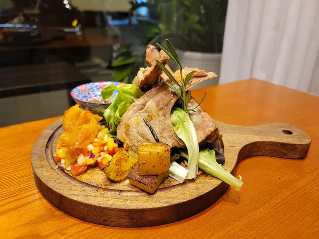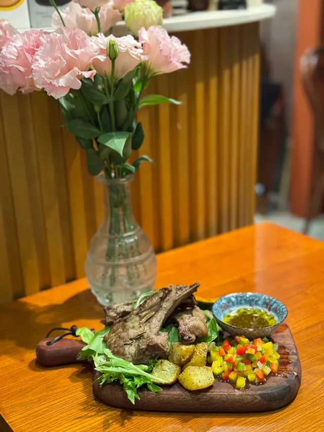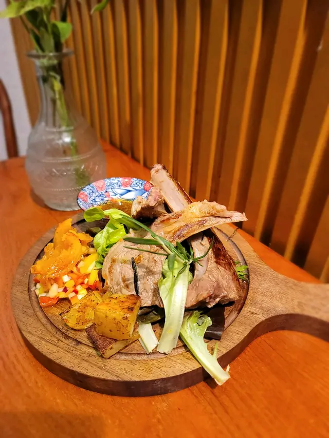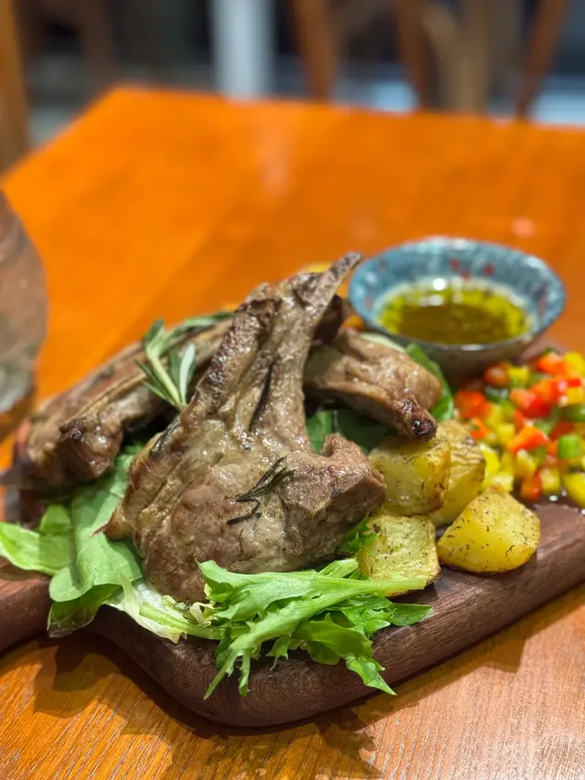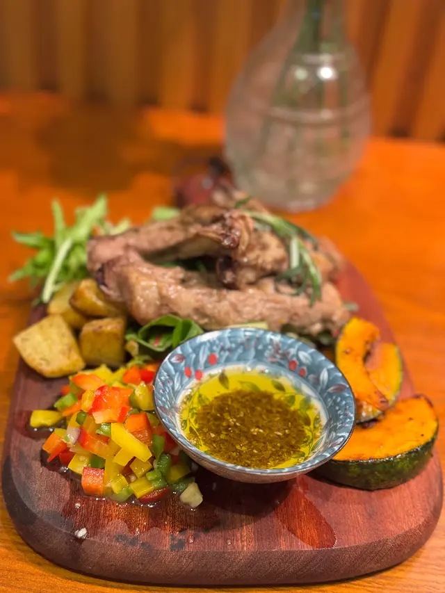 我與友人於8/8(五)約晚上七點🕖到達餐廳,當時內裏超級多人,有點嘈吵,位置不多,沒有想到居然這麼「爆場」。用QR code下單,但都有紙本menu。最低消費每人一杯正價飲品。叫了SIDES、SHARING (6PM)、SPRINGTIDE LUNCH SET。❶SIDES($68)①薑黃焗福花青瓜配酸奶花生醬:比想像中大碟,福花也不少,酸奶花生醬的花生🥜味好濃。❷SPRINGTIDE LUNCH SET($98)①黃金草慢煮雞胸義大利麵🍝:有番紅花、蟲草花、4塊雞胸、翠肉瓜、洋蔥🧅、蒜🧄等,義大利麵份量好多。汁亦好creamy。❸SHARING (6PM) ($168)①迷迭香輕煎紐西蘭羊架佐莎莎焗薯:焗薯為焗薯條🍟,有3塊羊架,配沙律菜🥗,西瓜粒🍉等。羊架沒有臊味,而且煮得好淋,易切。❹套餐+$38配特飲(可選少糖/無糖)①生可可藍莓🫐低卡蕉蕉燕麥奶:香蕉🍌味比朱古力🍫味突出②牛牛果🥑青瓜啤梨羽衣甘藍燕麥奶昔:青瓜🥒味出,超級清新以Cafe來說,價錢合理,份量足夠,又不用加一,服務態度ok,抵食