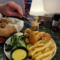 寶勒巷咁多間酒吧,想搵間靜靜地同朋友傾吓偈,又坐得舒服,食物質素又高嘅, 呢到係一個好選擇🥰避風塘魷魚鬚 $98炸得好酥脆,魷魚鬚都好大條,但係唔韌,好易咬 開,好有港式避風塘嘅味道,最特別係用個竹籠上,係好香港嘅感覺🧡炸魚薯條 $148用上大西洋嘅鱈魚柳,魚味極濃🤩 肉質細滑唔鬆散,啤酒炸漿都薄身,伴碟嘅薯條同沙律菜都唔錯紅酒燉牛尾肉番茄大通粉 $168牛尾肉炆到好軟熟入味,蕃茄汁酸酸甜甜,通粉好掛汁,撈埋啲芝士一齊食,好香好濃郁🤤觀濱特飲 $78首先呢個名好吸引😆 百香果酸酸地又甜甜地,有淡淡接骨木花嘅香味,飲落都幾開胃好值得一提嘅係,侍應嘅服務態度非常好,個個都好有禮貌好貼心👍🏻👍🏻…查看更多