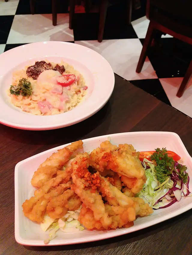 這個鮮魷可以再 encore! 很新鮮, 咬下去吃到鮮魷的口感很嫩滑, 而且外層炸得香脆, 灑上香粉, 很惹味呢!羅麥炒飯 這個炒飯合格, 每粒飯炒得乾爽不油, 有蛋, 白飯魚干, 跟香蔥及黑橄欖碎很香生薑蜂蜜檸檬水
