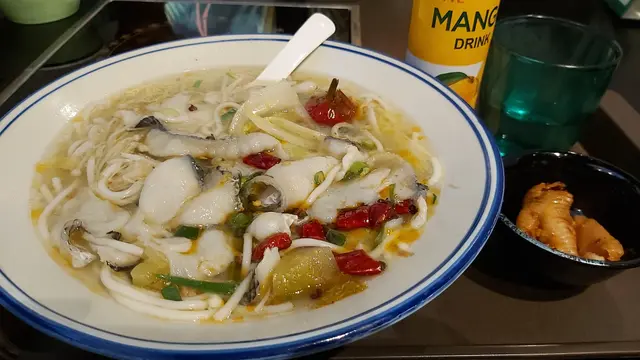 酸菜魚米線,份量都幾多,酸菜魚點了小辣,所以不會太辣,味道剛剛好,酸酸辣辣,很開胃!魚片都有幾多,薄切,魚骨不算很多。有大量酸菜,還有木耳和娃娃菜,這兩款都是吸味的蔬菜,特別惹味!