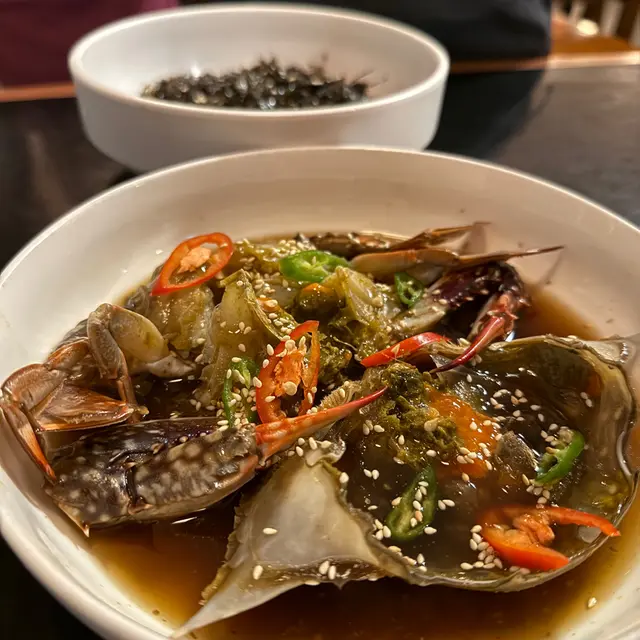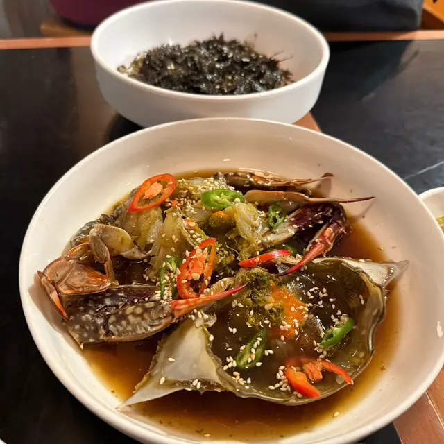 醬油蟹加紫菜飯團散發淡淡的海鮮香,米飯吸飽蟹汁,瞬間喚醒味蕾