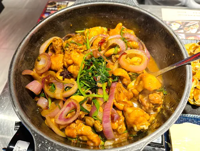 -可以自選辣度與麻度,今回選了BB辣與BB麻,雞煲上桌加熱,由職員代炒一回,等數分鐘便可吃,濃香雞煲配大量紅洋蔥與芫茜,雞汁不會過油或過濃,雞件份量足,啖啖肉,肉嫩帶汁,輕麻辣,不傷胃又能滿足嚐辣的心癮,大滿足