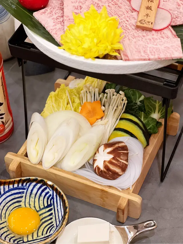 朋友生日,一起放半日假慶祝下,去左這間小店。店內裝潢充滿日本氛圍,讓人仿佛置身於日本。這裡主打關西壽喜燒,和牛質量非常高,入口即化,超級美味。飛驒牛盛2人餐 $988日本飛驒牛 180g來自日本岐阜縣的特級黑毛和牛,肉質柔軟細膩,油花分佈均勻,口感軟腍,入口即化,牛脂香氣濃郁,搭配醬汁甜鹹適中,讓人陶醉。日本和牛封門柳 130g肉質軟嫩,咬口感十足,肉汁豐富,牛味濃郁。沾上蛋汁後滑溜,更加美味。野菜拼盤拼盤內容豐富,包括娃娃菜、白菜、大蔥、洋蔥、冬菇、南瓜、豆腐、金菇和日本葛絲。特別喜歡日本葛絲,吸收了醬汁的鹹甜味,口感煙韌彈牙,搭配爽口的金菇,十分美味。飲品除了清酒和果酒,還有其他飲品可選。我們選擇了果汁汽水,其中日本木村靜岡麝香哈蜜瓜汽水的哈蜜瓜果味非常香甜,而日本木村完熟水蜜桃汽水果味則有點像藥水的味道呢~…查看更多