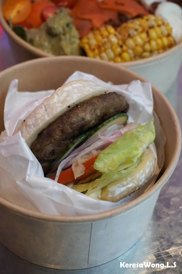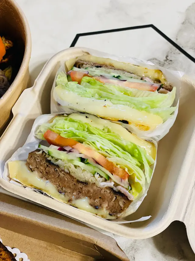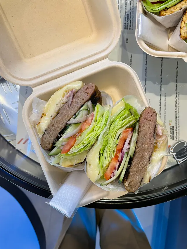 煙三文魚牛油果漢堡 $98麵包用上黃豆天貝(印尼獨特的傳統天然發酵黃豆食品),蛋白質豐富之外,口感真的超好!一顆顆有點像米通,煎至微焦,帶少許脆口和焦香,加上煙三文魚和牛油果,這份有42.2g的高蛋白質漢堡,有誠意又好吃!