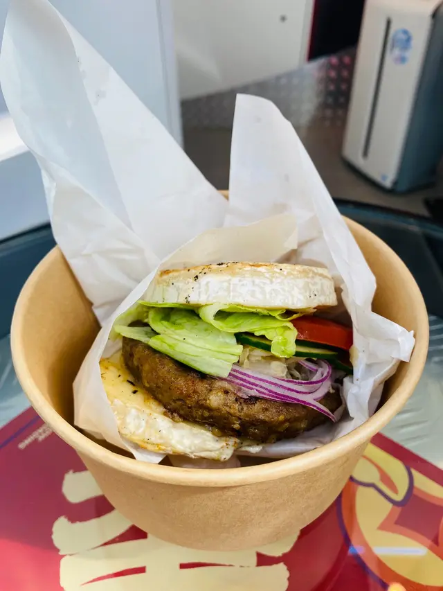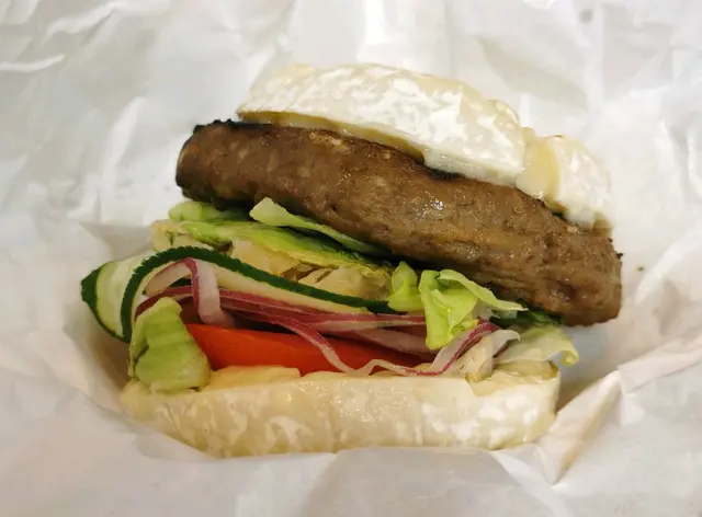 金文畢芝士牛肉漢堡 $118 另外點了這一個也好特別,用芝士作漢堡包的外層,軟糯口感,融融的金文畢芝士咸香配牛肉漢堡,很香,牛肉軟身,很夾,想不到生酮漢堡可以這麼好吃!