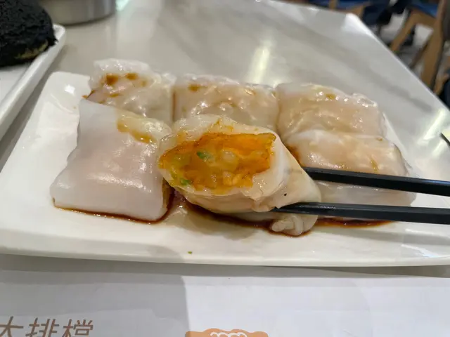 餐廳:點心到地點:旺角洗衣街菜式:中式點心餐牌:餃點類,酥點類,生滾粥,小食,中點類,包點類,腸粉類,飲品,蔬菜類,原盅燉湯,甜點類,籠仔蒸飯類。價錢親民。茶位每位$5。落單用QR Code。韭黃鮮蝦腸 $30韭黃鮮蝦腸一客兩大條切開六件,每條半透明白色腸粉皮包住兩中一細蝦仁,上枱時先加豉油。腸粉滑溜,入面蝦肉爽脆,食到韭黃味,都唔錯。金沙脆皮銀蘿腸 $30金沙脆皮銀蘿腸兩大條,一開六件容易食。金沙脆皮銀蘿腸其實係厚身滑溜雪白腸粉包住一層橙色酥脆皮,入面係滿滿一條條白蘿蔔絲,好特別。雖然係素菜,不過口感好特別,外滑內脆最入面就清甜爽爽地,食完唔覺油膩。醬皇金錢肚 $28醬皇金錢肚有4塊,口感係完美爽口彈彈地牙又滑滑地,個汁少少辣,好惹味,唔會太油或者重口味,面頭加上青同紅辣椒。下底居然有少少冬瓜,可降低油膩感。豉汁蒸鳳爪 $25豉汁蒸鳳爪一客有4件鳳爪,整得好淋,味道都唔錯。下底加左幾粒花生,伴有一片紅椒同綠椒。晶瑩鮮蝦餃 (2粒) $17呢度可以選擇叫蝦餃燒賣4粒或者兩粒,價錢除返每粒係一樣,好貼心!蝦餃塊皮厚薄適中,入面餡料爽口,無辣椒醬食都唔錯。原隻蝦燒賣 (2粒) $17燒賣真係有大大粒蝦係面,面頭再加上蟹籽,下底係啖啖肉爽脆唔肥,仲有冬菇味,皮薄餡靚之表表者。燒汁釀虎皮椒 $24燒汁釀虎皮椒一客四件,紅綠椒各二。面頭鯪魚肉好彈牙,鯪魚味鮮,鯪魚肉份量都唔少。食落只係微辣,油份略重。面頭加上幾條菜苗裝飾。所有點心都係即叫即整,熱辣辣上枱,質素高,而價錢並唔貴,無加一。環境算乾淨企理,平時午市超旺,好彩一點九一個人都可以直入。 …查看更多