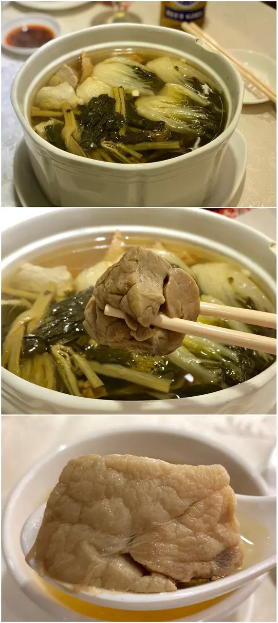 父母總係鍾意上茶樓食中菜,但係屋企樓下果間屋村酒樓又食得太多,開始覺得悶。橫掂呢排天氣幾好唔熱又無落雨,我就提議去屋企附近富臨酒家食飯,我仲記得細個間中阿媽都有帶我黎飲下茶架。富臨呢度嘅選擇比起屋企酒樓多好多,又有冬瓜盅、各款燉湯、最強海鮮推介等等,真係睇到餐牌都已經覺得好肚餓了。另外,仲有晚飯3寶推介,加上一系列精選特價小菜,樣樣都咁好味,既然係咁,我地決定唔叫飯,只叫餸。由細養成嘅習慣,就係開飯前先飲湯,呢個金銀菜燉白肺,可以潤肺止咳,而且阿媽話洗豬肺好麻煩,而家出街食唔洗自己洗又有得飲,特別好味喎。限量每位只可叫1份嘅蠔皇八頭鮑魚扣金錢,特價只需$26.8一位,冬菇大大隻,鮑魚就炆得夠腍。真係估唔到,有冬菇、鮑魚食$30都唔駛,去邊度搵呀。老婆最鍾意食泰式炒通菜,加上新鮮爽口嘅蝦球,所以就叫左呢個泰皇蝦球炒通菜。有阿媽鍾意嘅豬肺湯,又有老婆鍾意嘅炒通菜,咁又點少得老爸至愛嘅火腩大鱔煲呢。半肥瘦嘅火腩肉,混入呢個惹味十足大鱔,食得老爸津津有味。脆皮豬手份量夠大,而且外皮煮得非常香口,但略嫌比較乾身,但整體黎講尚算不錯。雖然話今晚唔叫飯食,但為免老爸半夜要起身煮麵食,最後都叫個生煎菜肉包比佢,生煎包最重要係夠熱,底部煎得夠燶夠香,我都忍唔住食左兩個呀,哈哈。…查看更多