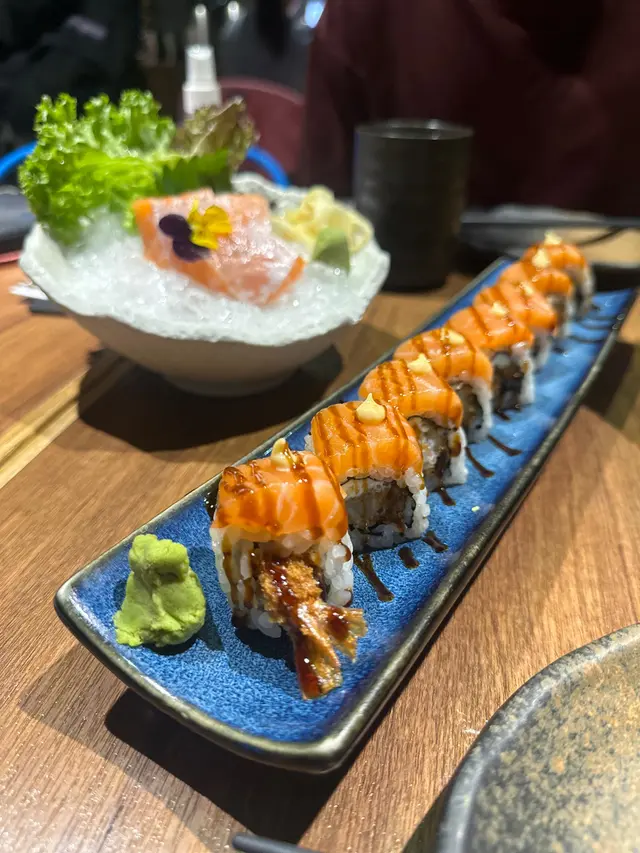 朋友相約在觀塘工業中心古今二短聚,初頭聽見觀塘工業中心,感覺地點很不方便。但經朋友帶路,原來又發現餐廳位置很方便,距離觀塘港鐵站D4出口,路程只需1分鐘。😂一步入餐廳門口,已看見整間餐廳都佈置好像日本居酒屋。餐廳老闆可能是一個動漫迷,餐廳還擺放了一些動漫Figures。因為今次是短聚,主要都是與朋友傾計為主,所以叫的食物不多。而朋友最想試就是古今二推介特色卷物「金龍卷」,而我就叫了一個「龍卷風沙律」。龍卷風沙律份量不少,除了沙律菜,還有海藻、蟹柳、蟹籽和脆片,再配上特製沙律醬汁。口感清爽香脆,沙律醬汁帶有少許微辣,味道都很特別。金龍卷賣相精美有心思,中間卷物餡料用了炸蝦,最有心思是最尾的那一件金龍卷,放了一條炸蝦尾,令人看見可以想像見到「龍」的尾巴。三文魚頗厚,挺有口感,加上配有少量芝士醬,味道也很有層次感。…查看更多