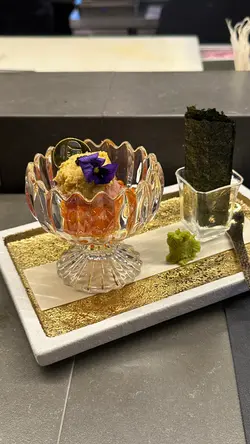 荔枝角隱世金酒屋🏮 視覺與味覺雙重衝擊✨平日夜晚都好多人食!多人的話有包廂位置,今次坐係bar 台可以睇住師傅準備野食都唔錯!🔥 必食高質打卡料理:▫️ 焦糖鵝肝和牛千層脆脆 ▫️ 海膽拖羅蓉千層脆脆 ▫️ 炙燒右口魚裙邊 🔥皇金杯:一啖盡享蟹黃、三文魚籽、拖羅蓉,奢華感滿分💖🔥金龍珠海膽吞拿魚蓉卷:加埋蛋黃無論係口感定係味道都畫龍點睛!一啖擺曬落口真係味蕾衝擊!🔥巴馬火腿芝士天婦羅🔥 兩款丼飯都用料豐富,新銀丼鋪滿右口魚邊,蟹皇丼就係滿滿蟹肉蟹黃🥰…查看更多