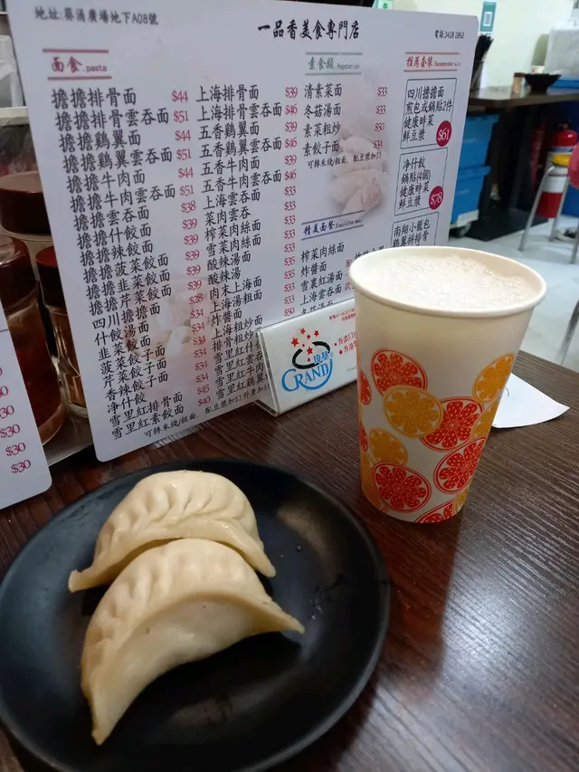 葵涌廣場美食很多,但相對的可以好好坐下食一餐的比較小,一品香算是和老公比較常去的小店。如果你大食,叫套餐會抵d。燥肉湯麵+鍋貼(4隻)+豆漿 $60老公叫的燥肉湯麵這裡的東西都比較濃味,肉燥調味足,湯底本身也有一點鮮味,麵質ok。鍋貼這裡的鍋貼是毎次必叫的,大大一粒,中間肉餡很多很飽實底煎得香脆,如果係細食的女孩,食4隻可能已經飽左。