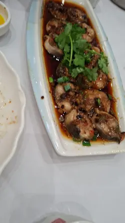 是日與好友入深井食燒鵝,食燒鵝真係深井必食。好快安排好入座就飲住茶食下花生睇下食咩好先。大家決定叫返個晚飯自選4-5人餐,當中選了小食沙薑豬手,燒味雙拼,即日煲靚湯,蜜桃冰梅骨,豉汁蒸鱔片,再加個3選1既$1系列阿翁燒鵝,阿翁小炒皇。沙薑豬手:豬手夠淋而且沙薑入味。燒味雙拼:燒腩仔皮脆肉唔會太肥,叉燒蜜糖香味鋪面燒得夠香。即日煲靚湯:粉葛豬骨湯好有家的感覺,煲湯都非常足料夠晒濃味又唔會確喉。蜜桃冰梅骨:肉質唔錯加上酸甜汁令到更為醒胃。豉汁蒸鱔片:用豉汁去蒸鱔可以令到餸菜更加帶出鮮味。厚厚肉咬落更為好食。阿翁燒鵝:唔好以為$1就會將貨就價,依個燒鵝無論份量同味道都做得好好。講下隻鵝:皮脆肉嫩,鵝皮同鵝肉之間脂肪層又唔算太厚,唔會成口油。阿翁小炒皇:韭菜花快炒夠清,腰果魚乾仔保持到脆香,蝦仁等令到餸菜更加色香味。最後有紅豆沙送滿足埋甜品胃,紅豆沙甜度適中紅豆夠淋。…查看更多