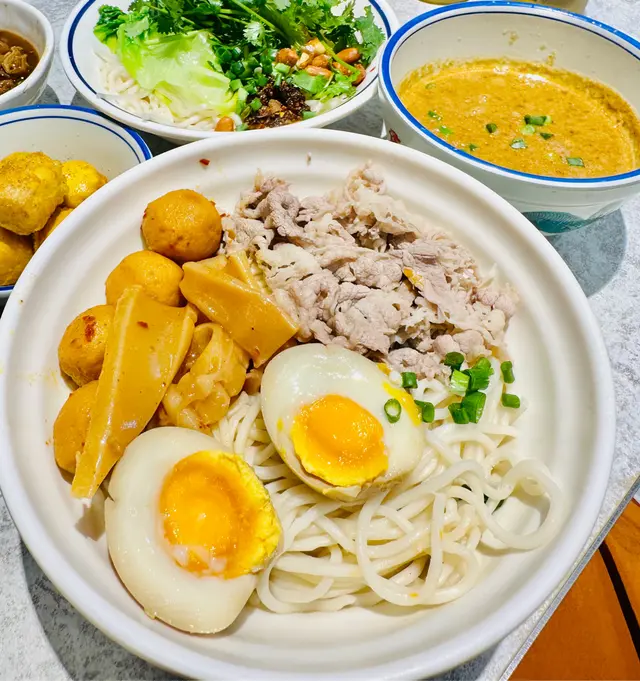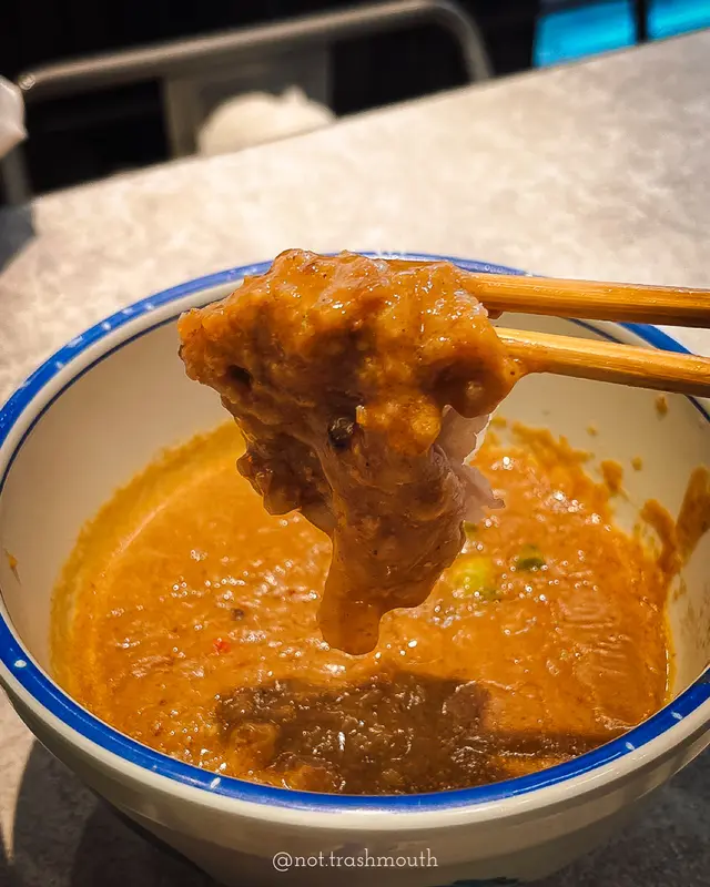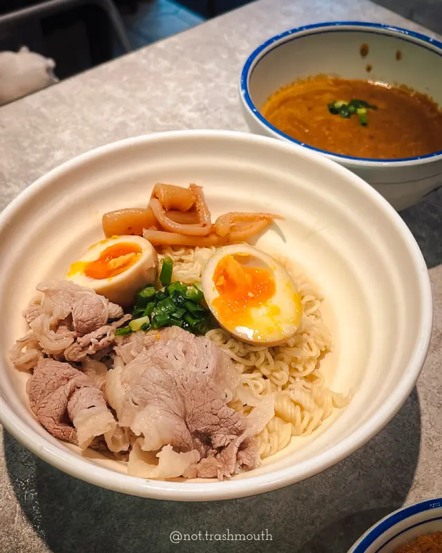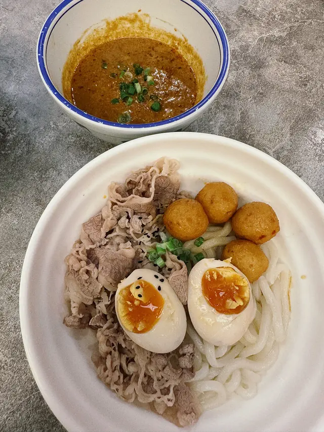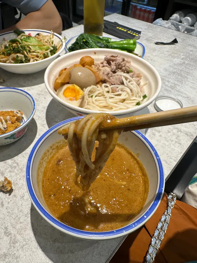 住得喺香港想搵間地道啲嘅老字號真係買少見少,放假又突然好想食沙嗲牛🐂!店面裝修格局雖然好新淨,但聽聞呢間鋪頭前身係一間超過40年歷史嘅荔園人龍車仔麵檔,一於試試佢!👅▸ 阿荔特濃沙嗲車仔沾麵 | $68[ 玻璃魷魚 / 雪花肥牛 / 溏心蛋 配 出前一丁 ]呢款車仔麵可以自選三餸配手工拉麵/烏冬/出前一丁三款麵底,不過話明心絲絲想食沙嗲牛就一定係揀肥牛同一丁㗎喇!以日式沾麵嘅做法製作湯頭真係好杰身好香濃,將一丁浸入去極掛汁,味道比起平時食到嘅沙嗲牛更加辣同惹味,食得出落咗唔少花生碎、花生香味好出🥜湯汁份量仲多到可以食到你漏晒口嗌不要不要都仲得,嗚呀😫配料嚟講肥牛大大塊厚身又夠肥,食落唔怕韌亦冇雪味仲有好多片;溏心蛋好流心蛋黃亦好香,蛋控食得好開心🐣;玻璃魷魚食落就好韌唔爽口,冇乜味之餘份量都比較少只有三四條,個人就唔係好推薦🦑出前一丁 is 一丁,冇煮到爛晒糊晒但唔知係咪煮起有晾過吓,有少少偏乾身同埋有啲痴埋晒難夾起啫😗特別想講嘅係,好多時以沾麵嘅方式去做食落雖然可以將沙嗲湯汁一網打盡,但有個致命傷就係麵同餸都唔入味,呢個時候就好睇沾麵汁嘅功架💪🏻鍾唔鍾意呢種製法就見仁見智,但難得有個沾麵汁真材實料令麵條同啲餸都掛得住湯汁,食到濃濃嘅沙嗲湯都叫做交足功課,絕對值得一試😋▸ 秘制牛筋牛肋腩麻辣撈麵 | $68牛筋牛肋腩係分開另上嘅,畀足一碗咁多仲炆得好入味,牛肋腩肉質偏實唔算嫩,都有一定牛味而且大大舊滿足到食肉獸;相對之下牛筋就做得比較出色,食落好彈牙有嚼勁,滿滿嘅骨膠原食完喉嚨好舒服😭🐷麻辣撈麵係以乾麵底再喺上面附上麻辣醬料、花生、芫茜、青蔥嘅方式上起,即食即撈🍜今次嗌咗小辣,辣度比起沙嗲牛要弱,食落都未見其他層次同其他香料嘅辛味,反而鹹味有啲太重,可能嗌返正常辣度或以上會比較惹味🌶️▸ 黑松露醬炸單骨雞翼 | $28(5件)呢個價錢五大隻都叫有肉地,外皮炸得乾身脆口、肉質嫩滑又保留到肉汁,黑松露醬亦冇偷工減料,叫做對得住個價錢啦(唔…好在意嘅係食落真係好似平時喺氣炸鍋老是常出現嘅某牌單骨雞翼🧐)✦ 食物 3.5 / 5 ✦✦ 環境 4 / 5 ✦✦ 服務 4 / 5 ✦…查看更多