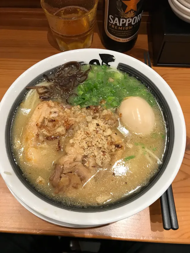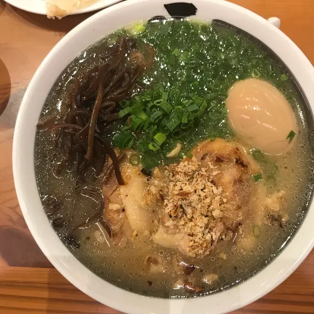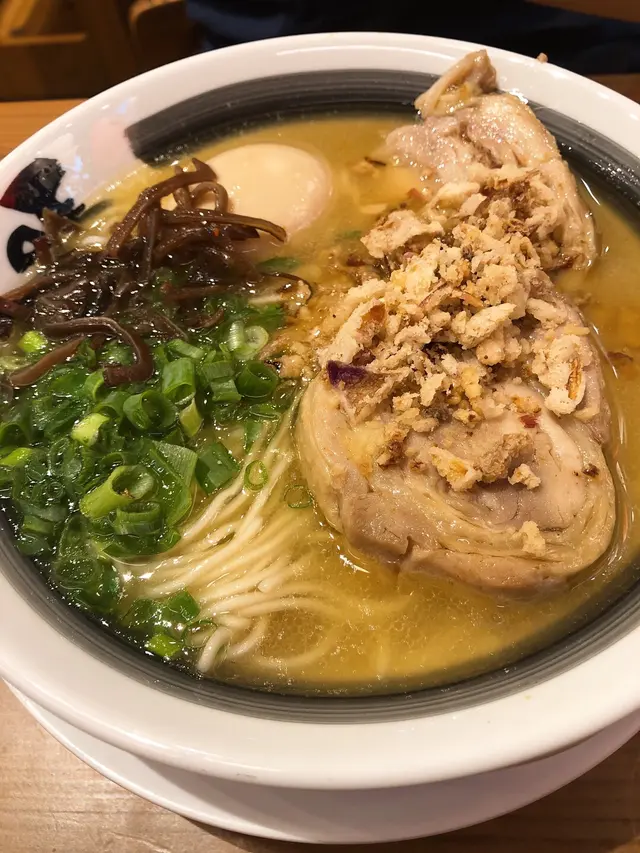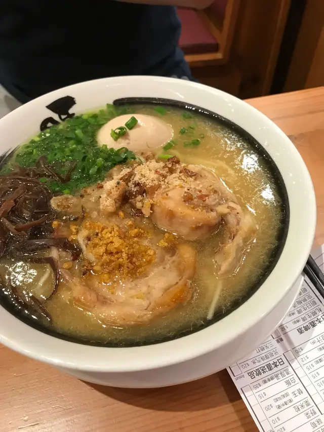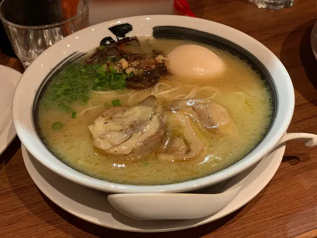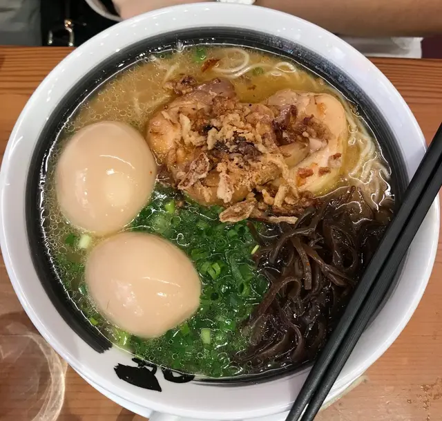 係銅鑼灣附近食lunch既人 (包括我自己在內), 一定有聽過呢間黎自日本廣島的過江龍「霸嗎拉麵」! 不過平時既午市真係太多人排隊, 黎遠都見到長長既人龍, 所以一直都未有機會試到。難得今日放工約左朋友shopping, 行到肚餓之後去覓食, 竟然無人排隊, 直接入得, 正🤩 同大部分拉麵店一樣, 麵質、湯底油度可以自由選擇, 我地一行三人叫左3個拉麵同埋2碟小食。因為餐廳本來已有檸檬水🍋💧提供, 所以無另外再叫餐飲。店裡燈光偏黃, 木系既佈置裝修加埋廚房窗口既紅色旗幟好有日本風格。餐廳善用高樓底既好處, 將天花改成斜面, 再鋪上長竹, 令成個設計更特別之餘, 又唔會令成個空間產生壓迫感。枱面上面有調味料 (一味粉, 蒜粉同餃子汁), 醬油碟, 筷子, 紙巾等用具, 因為長枱既設計係三人共用兩Set工具, 所以每個客人都一定接觸到, 比起其他拉麵店要兩人共用一套工具, 呢度已經好得多。等緊上菜既期間, 見到最面頭既白色小碟係用保鮮紙包住, 仲有字寫住叫大家拎下面既碟用, 令人感覺比較衛生同貼心。特盛炙燒豚肉拉麵 ($118)炙燒豚肉味玉拉麵 ($88)特盛既意思即係多D叉燒, 而味玉即係溏心蛋🥚。上面兩款拉麵味道相差唔大, 主要係配料不同, 所以一齊寫。當你食第一啖炙燒豚肉既時候, 你就會明白點解佢會成為招牌菜! 雖然佢超級厚身超大塊, 但肉質軟嫩😋。炙燒過的豚肉有微微的烤肉香, 仲非常香口! 唔係平時食果D好薄身既叉燒。而就係因為佢咁大舊, 而且油脂分佈平均同埋肥瘦適中, 咬落去唔會肥膩。至於味玉方面, 一開頭見到原隻上都有少少擔心隻蛋會唔會因為放係熱湯入面太耐而熟哂, 點知篤開之後好驚喜! 蛋黃漿湧住出黎, 流心效果非常好! 湯底飲得出係用心製作, 非常濃厚同埋具有鹹香, 飲左一啖就停唔到。拉麵既麵條比一般既麵粗少少, 幾掛汁。雞叉燒味玉雞白湯拉麵 ($88)叉燒拉麵就食得多, 雞叉燒真係第一次試🙊。一碗拉麵有兩大件厚而扎實的雞件,外形扁身呈圓型, 咬落去好嫩滑。湯底充滿住濃厚既雞味 (可能加左少少雞油?!), 同豚肉拉麵一樣, 麵身好掛汁, 同埋雞湯一齊食, 雖然質感無豬骨湯咁厚身 (相對清少少), 但仍然濃郁。唐揚炸雞 5件 ($35)上枱時, 每件炸雞都熱到出煙, 應該係岩岩炸起! 每件炸雞都好大舊, 外皮炸到香脆熱辣, 正! 食之前落左少少檸檬汁, 酸酸地, 解膩一流。咬落去炸雞度就會發現雞肉雖然炸左, 但係仍然非常嫩滑, 有肉汁! 好好食!羽根燒餃子5件 (使用app優惠 +$15)因為發現左原來下載左個app, 登記左之後就會有一張優惠卷可以即時使用。$15就可以食到原價$35的餃子, 好抵食! 呢個餃子做法好正宗, 餃子底部向天, 5隻餃子由一層薄薄的脆皮連接住, 唔同其他拉麵店咁樣, 一隻隻獨立分開。唔太肯定係唔係即叫即煎, 因為上枱時的餃子唔算超級熱, 所以外皮只係略脆。入面既肉咬落去有肉汁, 沾埋酸酸甜甜的餃子汁, 唔錯。…查看更多