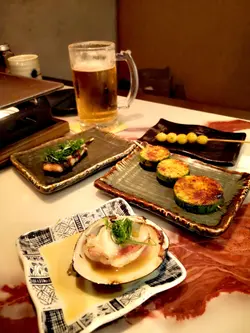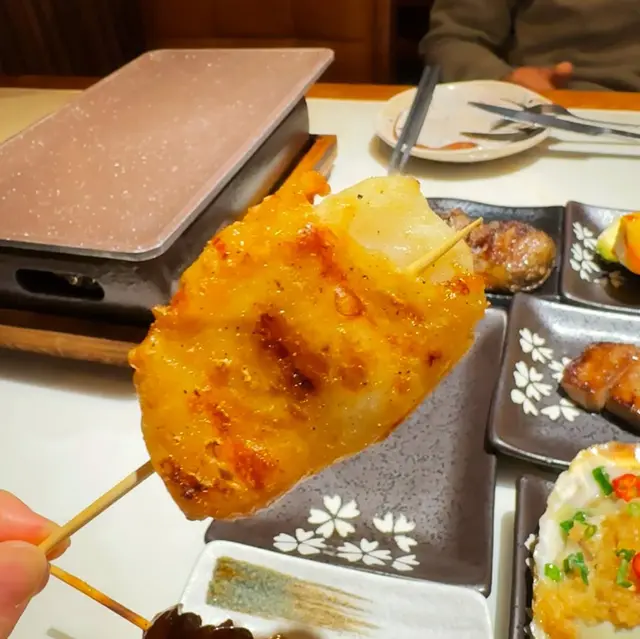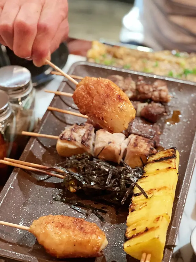 朋友想吃串燒,第一時間就想到燒烤堂。這裡有超過百款串燒,每次來都能嘗試不同的美味,絕對令人驚喜。店內環境寬敞乾淨,我們到達時幾乎滿座。食物方面,我們早已做好選擇,廣島蠔、鵝肝多士、玉子燒、波板糖、松板豬和豬大腸都是必食之選,配上一杯大生啤,實在完美。麻辣翠玉瓜 $16翠玉瓜大塊清脆,加上麻辣非常惹味。鹽燒日本銀杏 $24燒銀杏口感幾軟糯,味道清淡。和牛棒配松露一口飯 $58類似漢堡扒,加入芝士碎和蛋汁,撈飯一起食,味道濃郁,令人驚喜。豚肉節瓜波板糖 (付月見) $38豚肉片捲住節瓜片,口感層次分明,特別又美味。焦糖鰻魚芝士玉子燒 $28玉子燒甜美可口,搭配厚實的鰻魚和焦糖脆口的面層,口感豐富。焦糖青蘋果鵝肝多士 $108多士外脆內軟,鵝肝肥厚,入口即溶,令人非常滿足。浜燒日本活北寄貝 $58北寄貝軟嫩多汁,味道鮮甜,湯汁濃郁。蒜蓉燒日本廣島蠔 $48/2隻蠔肉飽滿,味道鮮甜,蒜蓉滿滿,必食之一,每人食兩只先夠。雞皮墨魚滑 $38雞皮香脆,魚滑軟彈,層次感十足。日式燒白鱔 $48鱔肉肥厚,醬汁味濃,加上蔥絲,風味獨特。椒鹽燒鴨舌 $28鴨舌軟嫩好嚼口,椒鹽香口惹味。鹽燒豚肉荔枝卷 $22豚肉捲住甜美多汁的荔枝,咸甜滋味。福岡味噌松板豬 $28豬頸肉爽口彈牙,味噌入味,甜美可口。七味汁燒豬大腸 $24豬大腸軟嫩彈牙,無異味,滷得入味,口感極佳。厚切鹽燒牛舌拖羅 $48牛舌彈牙,味道濃郁,汁多鮮美。鹽燒A4宮崎和牛 $58和牛肉質軟嫩,油脂豐富,牛味香濃。明太子雞腿肉 $28雞肉大串鮮美,搭配滿滿的明太子醬,鹹香惹味。汁燒免治雞肉軟骨棒釀冬菇 $28冬菇軟彈多汁,釀入免治肉和爽脆的雞軟骨,口感特別過癮。七寶生啤 $48生啤買一送一,超值大杯,酒味清爽,與串燒搭配一流。…查看更多