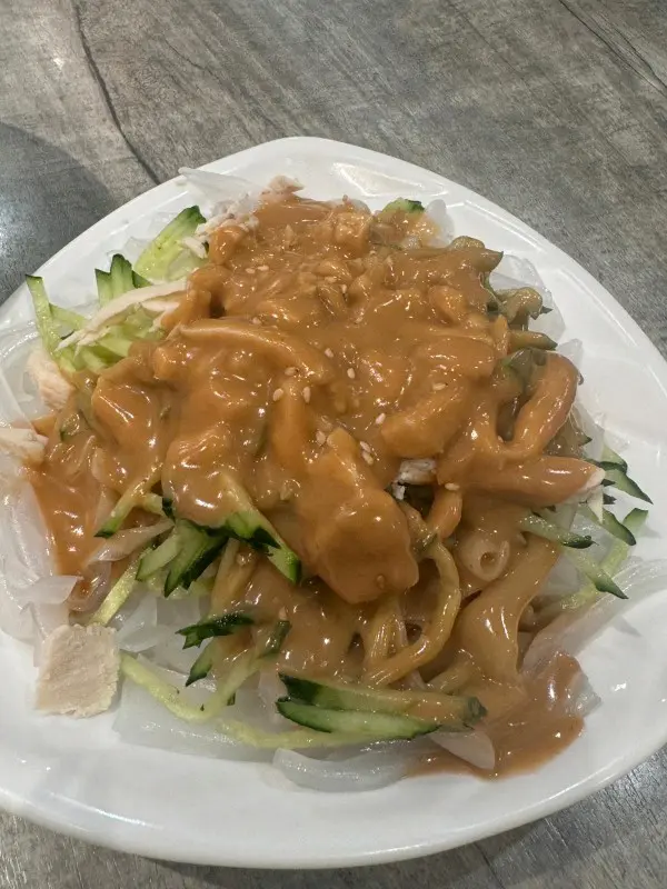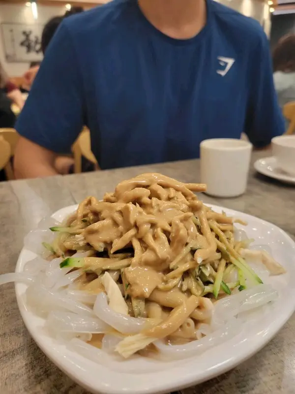 我們於30/10(三)約中午十二時半左右到達餐廳,地方挺大,用QR code下單。❶京蔥羊肉餃10隻 ($48):最後一道菜上,以為係湯餃,原來係淨水餃🥟,京蔥就見唔到覺,羊肉比較靭,有筋,沒有羊騷味,但就唔覺得係羊肉🤣❷蔥油肉絲拌麵 ($44):麵都幾大份,面底好多「色水」,肉絲足夠,自己撈埋一齊,食落就甜甜地,好得意😊有一些蔥粒,不過發現有蔥就冇切粒😂就比較硬❸雞絲粉皮(+$18):是麻醬雞絲粉皮,有青瓜絲🥒,雞絲反而比較靭,好彩唔係好大塊埋單不用加一,只可俾現金💰店內的音樂幾搞笑,居然係播迪士尼樂園內的音樂🤪…查看更多