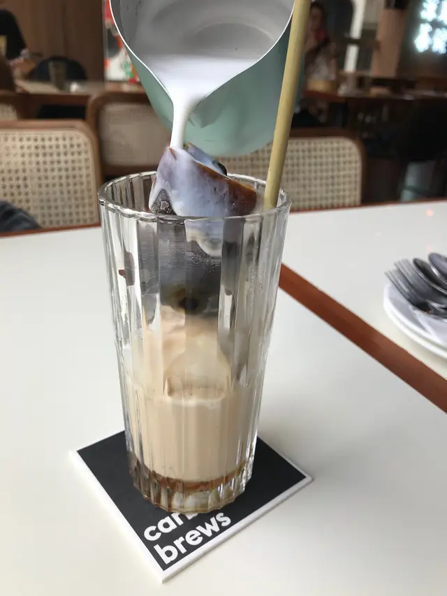 Server提我地、千祈唔好將啲雪糕直接點落舊芝士度呀😂會凍返硬個芝士ga!D̲r̲i̲n̲k̲s̲雲尼拿棕樹糖冰咖啡ℍ𝕃𝕁 𝕀𝕔𝕖𝕕 V𝕒𝕟𝕚𝕝𝕝𝕒 + ℙ𝕒𝕝𝕞 𝕊𝕦𝕘𝕒𝕣 ℂ𝕠𝕗𝕗𝕖𝕖最底層係palm sugar,上面係雲尼拿冰,最頂層係咖啡冰,上枱後Server倒入熱鮮奶😻2種冰慢慢溶化跟糖再mix埋一齊~