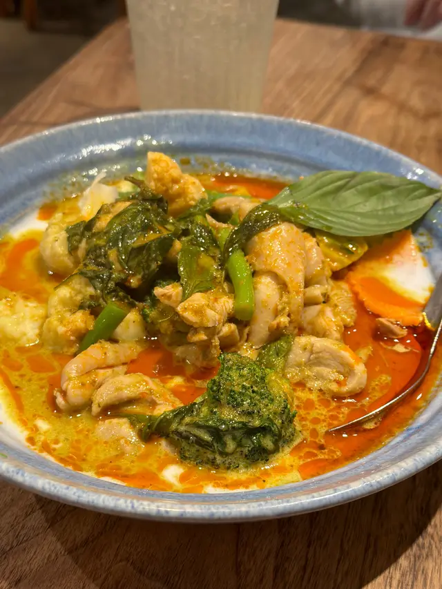 朋友家住荃灣說要帶我去其中一間她很喜歡的餐廳,食泰菜的,來到門口很有文青咖啡店的氣息,門口放了很多植物!裡面裝飾也很自然清新的感覺!我們兩個人先叫兩樣加飲品已經飽飽的,份量不少,價錢也不貴👍🏻🔸小食拼盤(有2年蝦餅,2件春卷,4件泰國雞),滿足了我可以吃到不同的小食,蝦餅好好食,不會太硬太實,咬口彈牙juicy! 春卷炸的好好,皮夠薄夠脆,餡料是雜菜絲!泰國雞,原來不是我想的那種重香料的味道,咬口是鬆軟的,像魚丸質地,味道也很好👍🏻🔸青咖喱雞,另外叫了薄餅,內有很多雞肉,也有很多豆角,椰菜花,還有西蘭花,青咖喱再配上泰式香葉來煮,真是很香,味道甜甜辣辣,而且咖喱汁煮得不結身,可以說咖喱湯,吃完薄餅沾咖喱,我們還當湯這樣喝,實在太好味,味道很適中!🔸芒果熱情果沙冰:這杯飲品無得輸❤️,芒果本已經吸引,再混合熱情果一起打成冰,味道是提升了很多,甜甜的芒果再配酸酸的熱情果,非常好喝!🔸荔枝特飲:有香茅有青檸,有氣的,味道清新,不會太甜!…查看更多