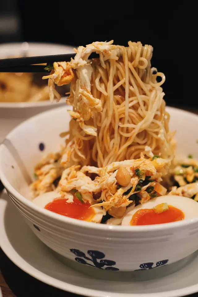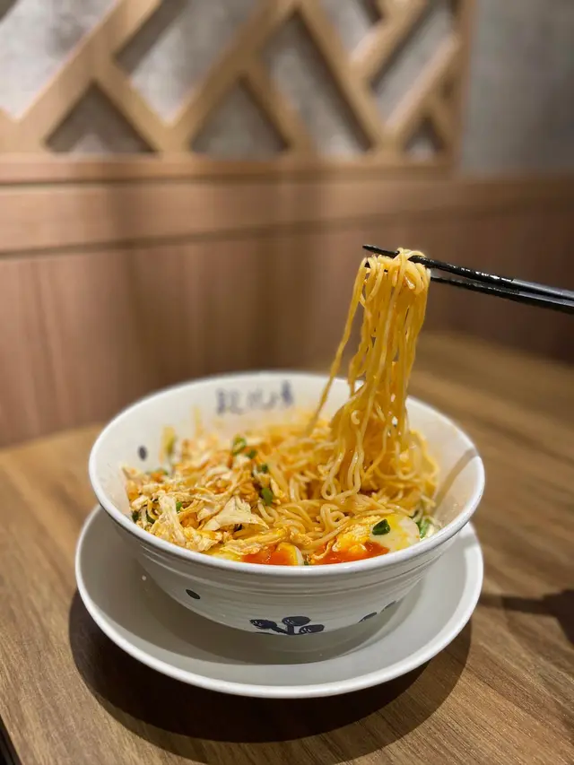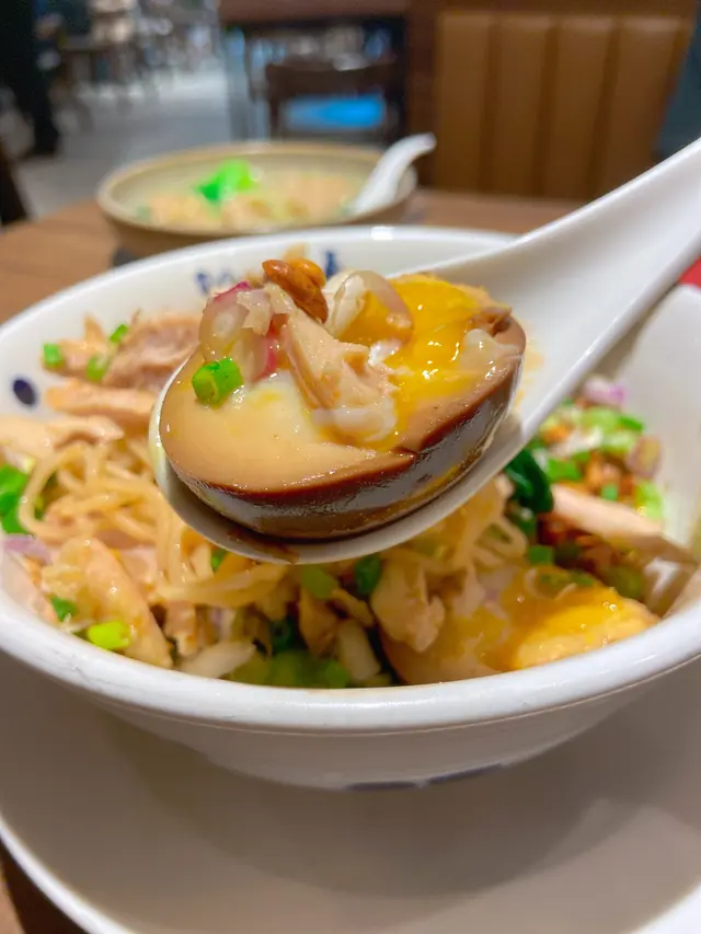 。手撕雞滑嫩,夾雜麵條同吃,豐富口感。