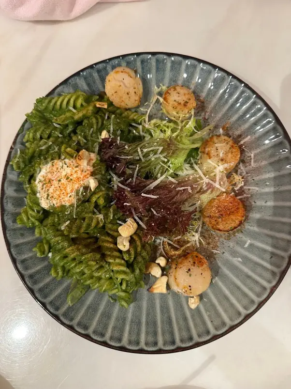 今日朋友生日,約佢來到太子呢間cafe。雖然餐廳唔大,但裝修十分寧靜舒服,同街外熱鬧既氣氛成對別。點左一份2人餐加一個意粉。雞胸沙津(⭐️⭐️⭐️⭐️⭐️)餐廳既沙津好靚,未食已經覺得好fresh。沙津菜唔係馬虎,用上多種新鮮品種,唔會hea你。另外配上濃度剛好既沙津汁,好開胃同清新。另外不得不提雞胸,慢煮之後令雞胸保持嫩滑,一d乾柴感都冇!精選餐湯(⭐️⭐️⭐️⭐️⭐️)超級喜歡餐廳令次既蔬菜湯!佢唔係一般個種又杰又咸又無料既羅宋湯,反而好中二佢個種清湯底又蔬菜滿滿既感覺,每一啖都有好舒服既感覺,而且真係感覺到蕃茄、西芹等等蔬菜原味道,健康up!西京燒比目魚(⭐️⭐️⭐️⭐️⭐️)餐廳煮既比目魚我敢講係酒店級數,首先魚肉十分嫩滑,但唔係完全脂質,而係魚油魚肉比例均勻,食到魚肉又每啖滑溜。而且火喉剛剛好,唔會太實又唔會未熟。另外調味好出色,西京燒煮得好惹味,味噌,酒香交替,呢個價錢就食到,好幸福呀!青醬帶子螺絲粉(⭐️⭐️⭐️⭐️⭐️)呢碟螺絲粉擺盤十分精美!帶子全部都煎得金帶微焦,每啖都肉質仲係嫩滑,仍然享受到刺身級肉質。另外青醬調味都好出色,絕對唔覺得肥膩,反而羅勒同欖油香味滿滿,加埋小小蛋黃醬,好食到停唔到。咖啡燒汁烤豬仔髀(⭐️⭐️⭐️⭐️⭐️)第一次見到食物拌埋咖啡粉食,唔好以為好怪,食落好夾,咖啡既香氣同微甘完美地去左豬肉本身既小小膻味,特別喜歡豬仔髀好嫩滑,一d都唔會鞋口,配搭埋沙津菜同香烤蘑菇,一d都無罪惡感!Apple crumble (⭐️⭐️⭐️⭐️⭐️)餐廳既甜品處理一d都唔馬虎,好中二佢個crumble上面有杏仁片,令到甜品既口感層次豐富左。另外,蘋果同肉桂都好香濃,為今餐錦上添花。熱檸檬柚子蜜(⭐️⭐️⭐️⭐️⭐️)最後飲埋熱檸檬柚子蜜覺得整餐好完滿,而且係秋意漸濃既天氣下飲杯柚子蜜,特別覺得滋潤舒服!~~~~~~~賞島咖啡屋 太子花園街233-235號偉雄大廈地下A號舖推介菜式:雞胸沙津、西京燒比目魚、青醬帶子螺絲粉👍出色味道👍地點方便👍環境舒適 …查看更多