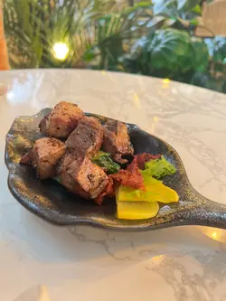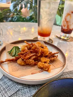 The Cottage 元朗隱世打卡餐廳今次我地黎到到元朗打卡餐廳-The Cottage,鋪頭裝修設計都非常出色,田園風~植物為主,一入門口已經設有打卡位,而且餐廳寵物友善- 歡迎攜帶小動物入座。魚籽海膽醬蟹肉炒飯 $268炒飯上鋪滿左新鮮海膽及魚籽,配上海膽醬令到整個炒飯都昇華左另一個層次,炒飯既海膽味比較重,配上蟹肉及魚籽令到整個炒飯既口感都豐富左好多,而且份量都好多,兩個人食都食唔晒。呢個炒飯確係值得推介。黑安格斯一口牛 $88充滿牛味既一口牛,肉質鮮嫩而且份量都唔少,每一口牛都有種入口即溶既感覺。青醬芝士燒大啡菇 $38大啡菇上鋪左整塊芝士,令到大啡菇既味道都充滿左芝士味,而且大啡菇唔會燒得太乾,味道比賣相更加出色!汁燒黑豚肉 $38呢到既汁燒黑豚肉有好香既燒烤味,而且肉質鮮嫩,味道同賣相都係100分和風蟹肉球 $68蟹肉比例相當多,每一啖都充滿住蟹肉既味道,中意食蟹既朋友,呢個一定要試下。唐楊炸魷魚鬚 $68鬆脆可口嘅魷魚鬚,炸粉唔會好多,亦都唔算好油膩,配上沙律醬,味道更加搭配。士多啤梨鮮奶 $48賣相好特別,而且士多啤梨同鮮奶既配搭及味道都非常搭配。值得一試!柚子梳打 $38味道非常清新解渴,好適合夏天咁熱既天氣飲用,柚子味道濃郁,而且唔會太甜。值得推介。甜品紅絲絨蛋糕 $68賣相非常出色,而且好重朱古力味,中間夾住一層忌廉有少少芝士味,令到蛋糕既口感及味道更加豐富,所以非常推介呢到既甜品!…查看更多