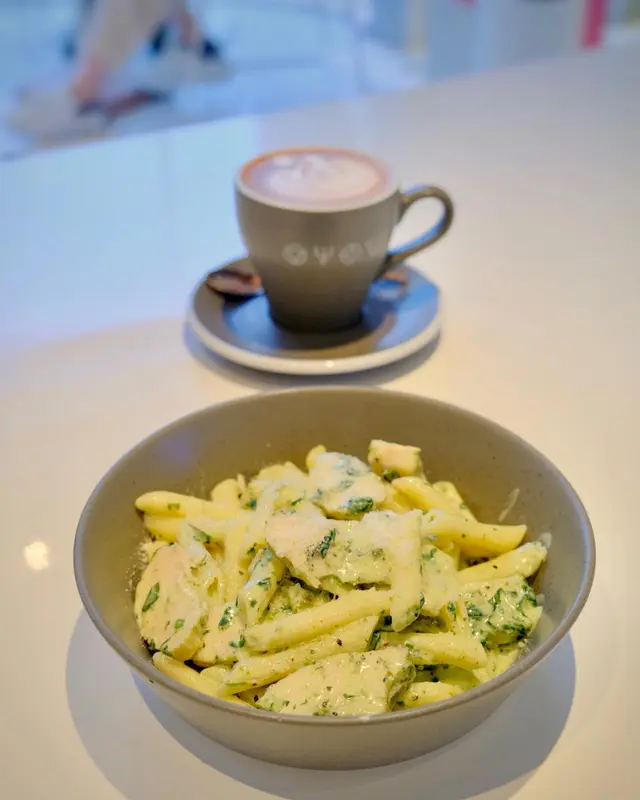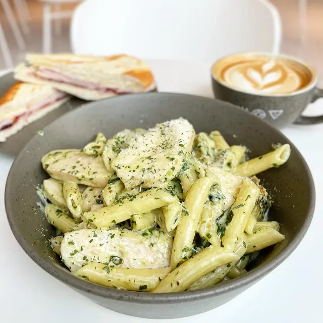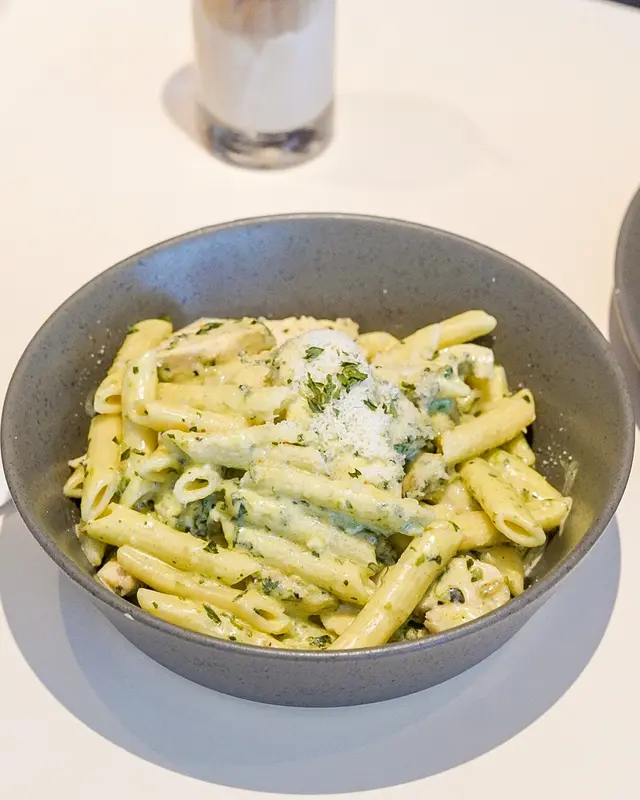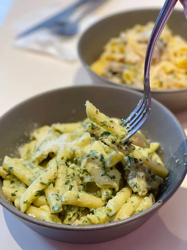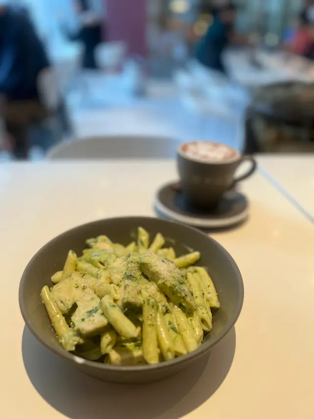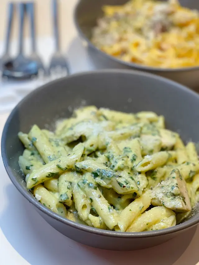 今日早餐揀咗餐廳芝士煙肉奄列配香脆牛油多士~奄列份量驚人,足足3隻蛋嘅份量超滿足!🍳 厚身嘅奄列煎到金黃微焦,一切開就有車打芝士同鹹香十足嘅煙肉,蛋香超濃郁!☕️ 加錢升級嘅拉花咖啡好驚喜,入口順滑帶堅果香,完美中和早餐嘅油膩感~🍝 午餐試咗人氣嘅青醬雞肉忌廉長通粉🌿 自家製青醬香氣撲鼻,混鮮忌廉打成creamy又唔膩嘅醬汁🐔 雞胸肉嫩滑多汁,一啲都唔柴,長通粉煮得彈牙,每粒都掛滿翠綠色嘅醬汁💫 清新羅勒味同濃郁忌廉出奇地夾,食完成個人都好refresh!…查看更多